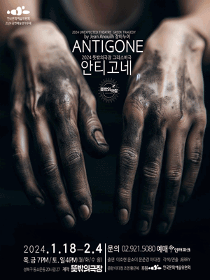 내가 여러 번 밝혔듯이 나는 연극 공연을 예매할 때 포스터의 영향을 많이 받는 편이다. 내용에 흥미가 끌려도 포스터가 형편없으면 망설이게 되고, 내용에 흥미가 끌리지 않아도 포스터가 그럴듯하면 역시 망설이게 된다. 이 연극의 포스터는 내 결정을 180도 바꾸어 놓았다. 시체를 검시하는 검시관이 여전히 자신의 실존을 주장하는 죽은 자의 인격을 극복하기 위해 시체의 얼굴보다도 손에 더 거부감을 느끼듯이, 이 포스터는 안티고네의 얼굴이 아니라 오빠의 무덤을 파느라 더러워진 그녀의 손에 주목한다. 이 포스터는 주체로서의 한 개인의 선택과 행동, 그리고 그 결과에 대한 피할 수 없는 책임을 더러워진 두 손을 통해 적나라하게 드러낸다. 이 손은 더러워진 자신의 흔적을 깨끗이 씻어버리기보다는 오히려 모른 척하고 싶어 하는 우리의 코 앞에 보란 듯이 들이미는, 그리하여 자신의 범행을 숨김없이 자백하며 동시에 강요하는, 무죄를 읍소하는 것이 아니라 유죄를 주장하는, 폭력으로 저항하기보다는 떳떳하게 자신을 내어주는, 그리고 무엇보다 마르고 가녀린 어린 여자의 손이다. 예전에도 안티고네 연극을 몇 번 보았지만 그중 가장 훌륭한 포스터라고 생각한다. 그래서 나는 이 포스터의 연극을 보러 극장으로 갔다.