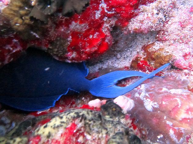 우리 팀의 노련한 다이버 Y님도 물려서 슈트에 구멍이 나고 피가 줄줄 났을 정도로, 주의를 기울이지 않으면(주의를 기울여도?!) 금세 다가와 꽉 물고 놔주지 않는다.