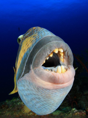 'titan'은 그 큰 몸집 때문에 붙여진 이름이고 트리거의 'trigger'는 방아쇠를 뜻하는데, 사진에 보이는 첫 번째 등지느러미가 공격을 할 때는 저렇게 스윽 방아쇠처럼 올라온다. '나 열받음', '나 흥분함'을 표현하는 것이다. 그래서 바다에서 이렇게 등 지느러미가 세워진 채로 희번뜩 하게 나를 바라보는 타이탄 트리거를 보면 줄행랑을 쳐야 한다. 트리거 피시의 이빨은 매우 강해서 아무거나 다 씹어먹는다. 산호, 약한 조개, 문어, 작은 물고기, 나의 슈트, 도망가려고 휘젓는 핀까지.