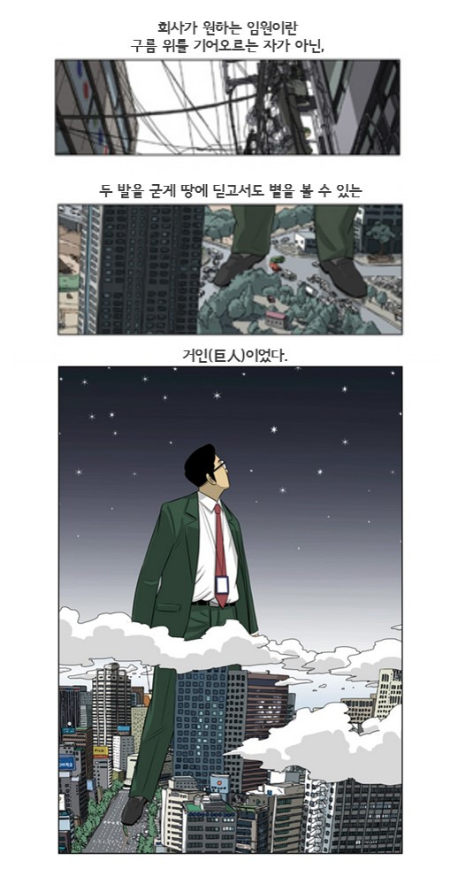 구름 위를 기어오르는 자가 아닌 별을 볼 수 있는 거인