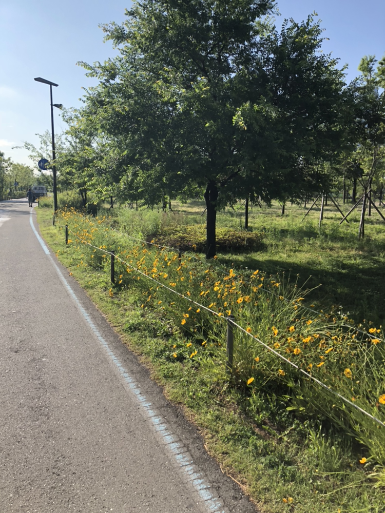 어제는 특히 비가 그치고 날이 무척 맑았다. 열심히 페달을 밟아야 하는 출근길이었지만, 아침 햇살에 반짝이는 강물결과 자전거 도로변의 아름다운 모습들을 사진으로 담아두고 싶었다. 이런 아침저녁 풍경은 덤이다. 나의 출근 여정을 이 페이지를 빌어 한 번 공유해 본다.