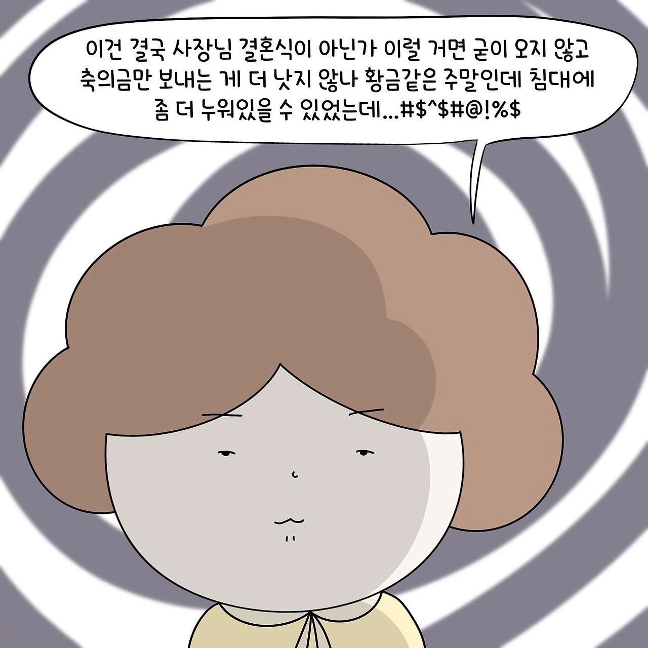 ‘이럴 거면 난 먼 미래에 결혼하더라도 회사 사람은 부르지 말아야지’ 싶다가도 ‘아냐, 나만 당할 순 없지’ 하는 못된 심보가 도져 버린다.