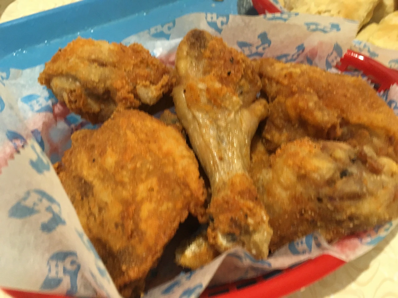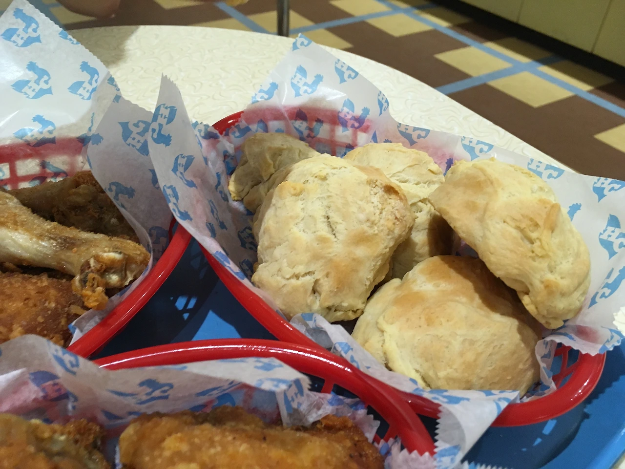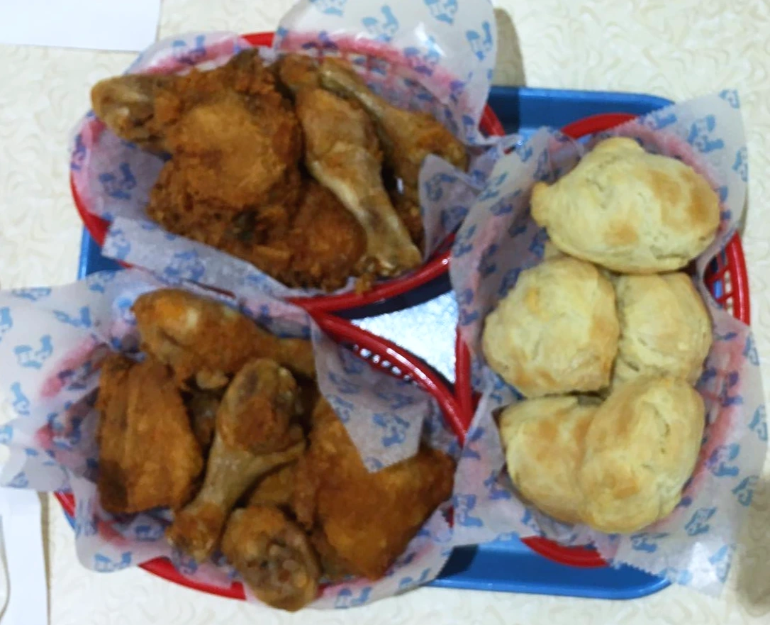 약간 당황스러운 맛집 분위기이긴 했으나 치킨만 맛있으면 되지. 치킨 한 마리 (한 버킷이라고 하더라)와 비스켓 6개 세트가 32달러 정도다. 치킨 한마리에 3만 5천원이라니. 미국이 물가가 비싸도 닭다리나 닭가슴살은 정말 저렴한데, 맛집이라 그런지 정말 비쌌다. '마...맛있겠지...'