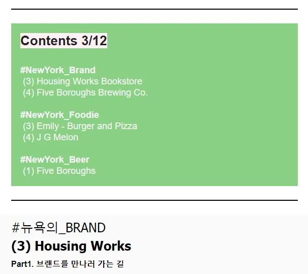 모수가 많지 않아서 데이터를 분석할 정도까진 아니고 대략적으로 이야기하는 수준이지만 여기서 인사이트를 얻을 수 있었다. 바로 사람들이 나의 타이틀이나 인기가 아닌 (있지도 않음..) '뉴욕종합잡지'의 뉴욕이라는 주제에 흥미를 보인다는 사실이었다. 현지 뉴요커들이 사랑하는 로컬 브랜드나 숨은 핫플을 알려주는 온라인매거진이 눈길을 끈 것이다.