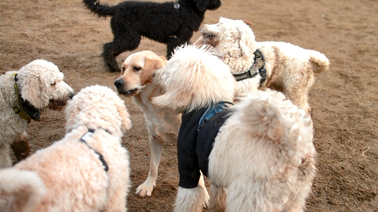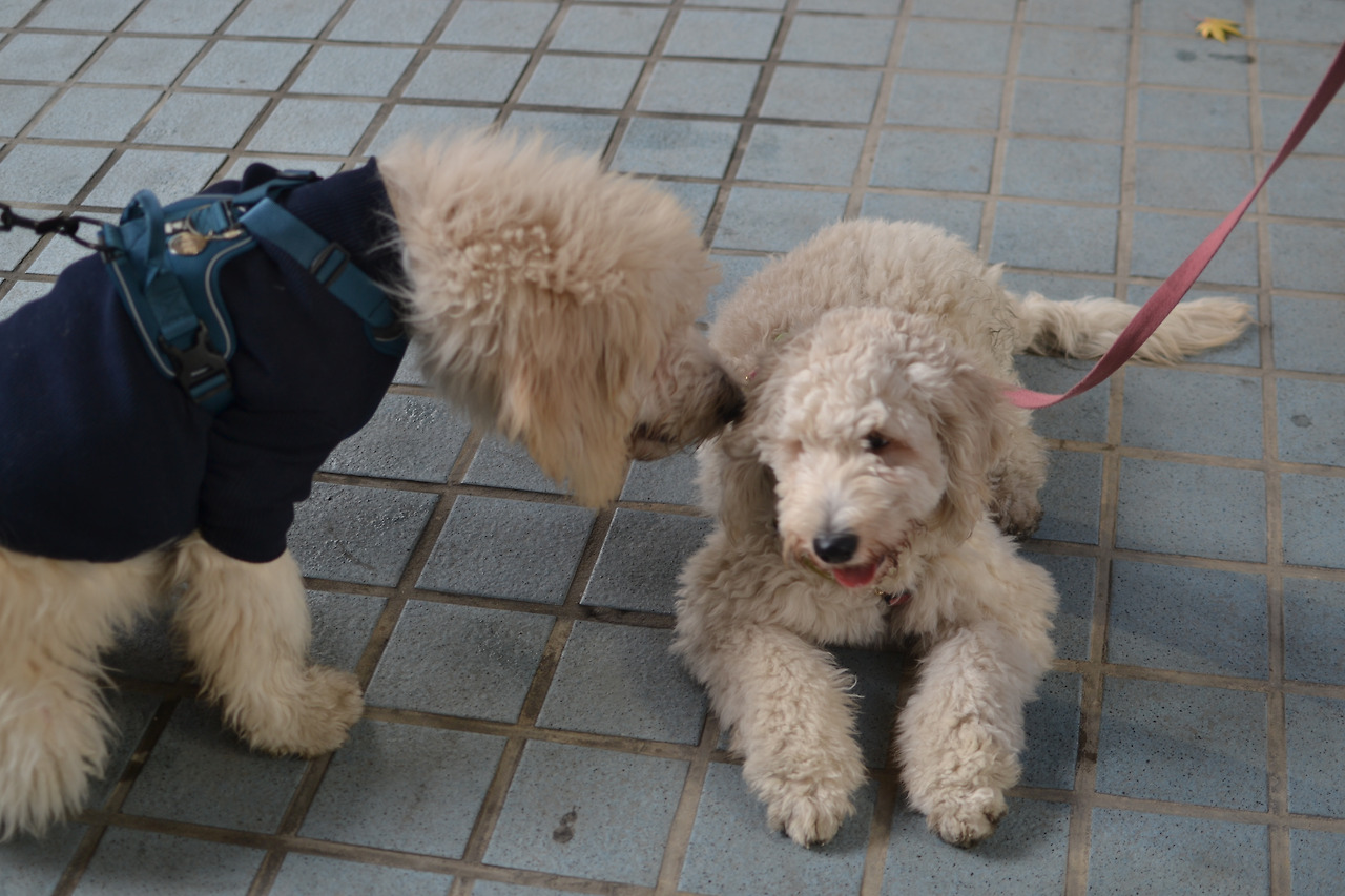 온도는 남매들과 리트리버 엄마, 스탠다드 푸들 아빠와 함께 2개월 반을 지냈답니다:) 그 중 집사들끼리 연락이 되는 4남매를 입양 후 3개월 만에 만나게 되었어요!