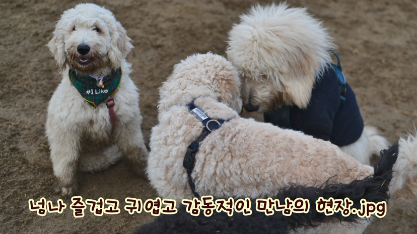 너네 프랑스견이니? 볼 맞대고 인사하는 두들이들. 표정도 웃고있고 진짜 얼마나 행복했던거야. 집사들은 단체로 다들 놀라고, 뿌듯해했지요. 애들 잘논다면서, 진짜 알아본다고, 우리 기특이들! 똑똑이들! 집사들끼리 모이니 마음놓고 댕댕이 자랑을 했다죠.
