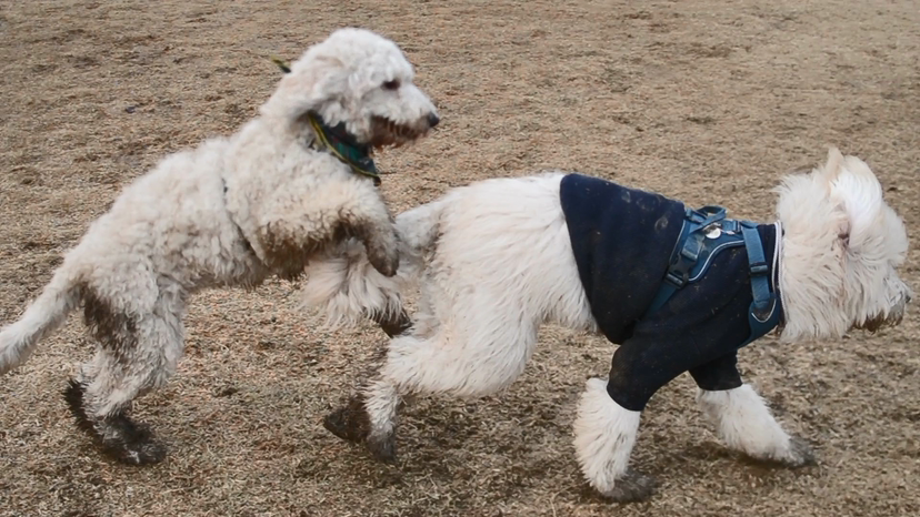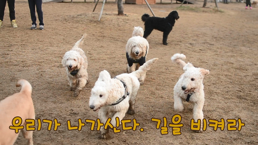이 녀석들, 카메라 앵글을 아는 걸까요? 아주 넷이 우다다다 리트리버 공격하러 가는데, 아주 비장합니다. (ㅋㅋㅋ) 정작 순둥이들이라 리트리버를 포위해도, 딱히 공격하거나 접촉하는 일도 없더만 일단 따라갑니다. 다같이 공동행동. 대체 무슨 생각이야. 이런 귀요미들같으니.