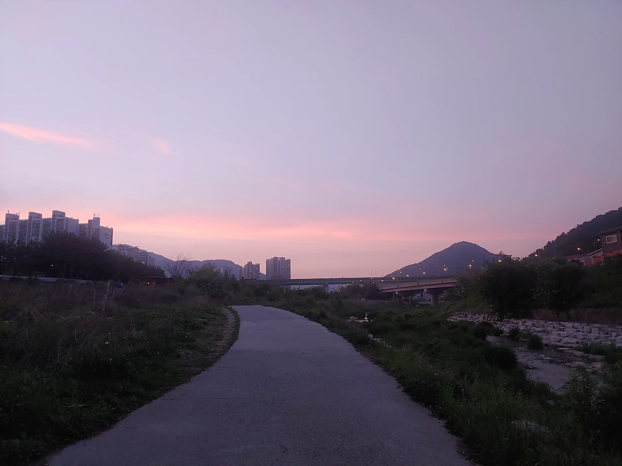 해가 뉘엿뉘엿 지는 시각. 산 뒤로 넘어간 해가 아직 그 영향력을 끼치고 있어 빛이 남아 있는 이때, 집 안에 불을 다 끄면 한낮에는 보이지 않던 바깥 풍경들이 선명하게 보인다. 파란 하늘 위에 흘러가는 핑크빛 노을과 삼삼오오 불을 밝히기 시작하는 거리의 가로등 불빛.