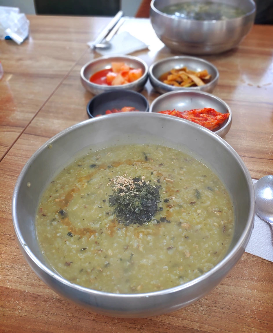 언니와 마주 앉아 고소한 참기름 향에 꼬들한 보말이 입안 가득 씹히는 보말죽 한 그릇을 뚝딱 해치웠다. 서로 얼굴을 마주 보며 여전히 금오름의 맛있는 공기가 여전히 우리 곁에 맴도는 기분을 느끼며 소박한 만찬을 즐겼다. 너무 맛있다며 발을 동동 구르며 행복해하는 언니의 얼굴을 보니 내가 더 행복하다. 바삐 움직이며 음식을 서빙하는 식당 아주머니들의 상기된 표정과 김이 모락모락 피어오르는 음식, 그리고 맛있는 음식에 대한 기대로 가득한 다른 테이블 손님들의 표정의 조합이 그 맛을 한층 배가시킨다.