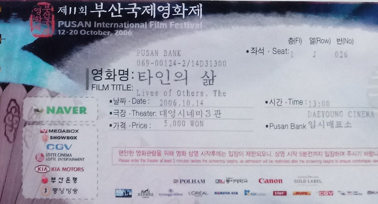 2006년 부산국제영화제에서 여러 영화를 보았지만 지금도 가슴 깊이 남아있는 작품이 있다. 어떤 영화인지도 전혀 모르고 보고싶은 영화들 고른 후 시간에 맞는 영화라서 별 생각 없이 보게된 영화였는데 인생영화가 되었다. 독일의 플로리안 헨켈 폰 돈너스마르크의 문제적 데뷔작 <타인의 삶>은 유럽의 각종 영화상을 휩쓸었을 뿐 아니라 2007년 79회 아카데미 시상식 외국어 영화상까지 수상한 수작이다. 이 영화는 미국과 소련을 중심으로 양측 동맹국 사이에 갈등과 대립이 극에 달했던 냉전시대 1984년 서슬 퍼런 첩보와 감시가 극에 달했던 동독의 한 비밀경찰이 마음의 균열이 생기는 과정을 밀도 있게 그리면서도 가슴 진한 감동을 주는 작품이다.