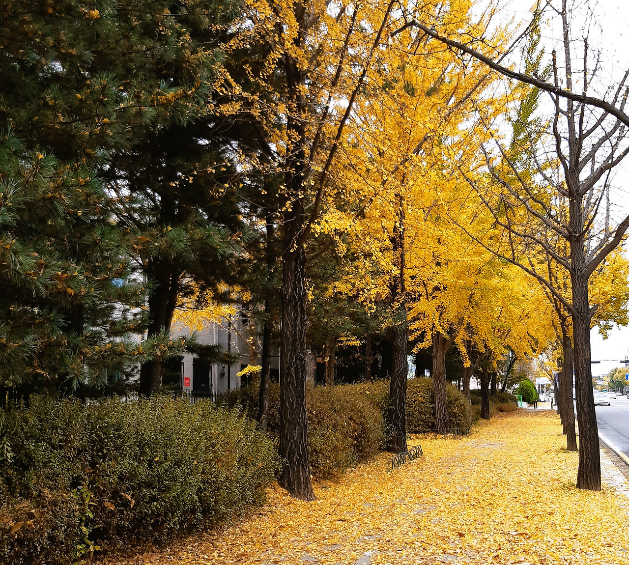 자전거를 탈 때는 쌩쌩 지나가기 때문에 거리 풍경을 찬찬히 보기는 어려웠는데 오랜만에 걸어보니 가을의 정취를 흠뻑 느낄 수 있었다. 낙엽이 가득 쌓인 길을 걷는 발걸음마다 바스락바스락 소리가 나는 게 듣기 좋았고, 빨간 단풍잎도 예쁘지만 샛노란 은행잎이 주단처럼 깔려있는 길은 정말 감탄이 나올 만큼 아름다웠다. 그렇게 한참 가을을 만끽하면서 걷다가 신호등 앞에서 보행 신호를 기다리고 있는데 괜스레 마음이 찡해지는 장면을 마주하게 되었다.