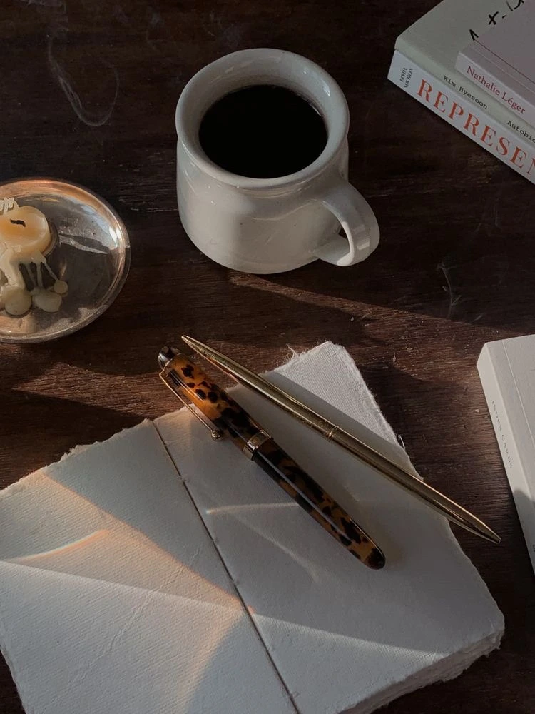맑게 울렁이는 아침, 호롱이며 유혹하는 촛불과 고소한 향 가득 안고서 야무지게 담겨진 커피, 든든한 펜 한 자루와 함께 앞에 놓여있는 퍼석한 노트 한 권. 이건 어마어마한 전조라 붙들어야지 된다. 어떤 이야기가 펼쳐질까요 오늘은, 무엇을 쓰며 행복해볼까요.