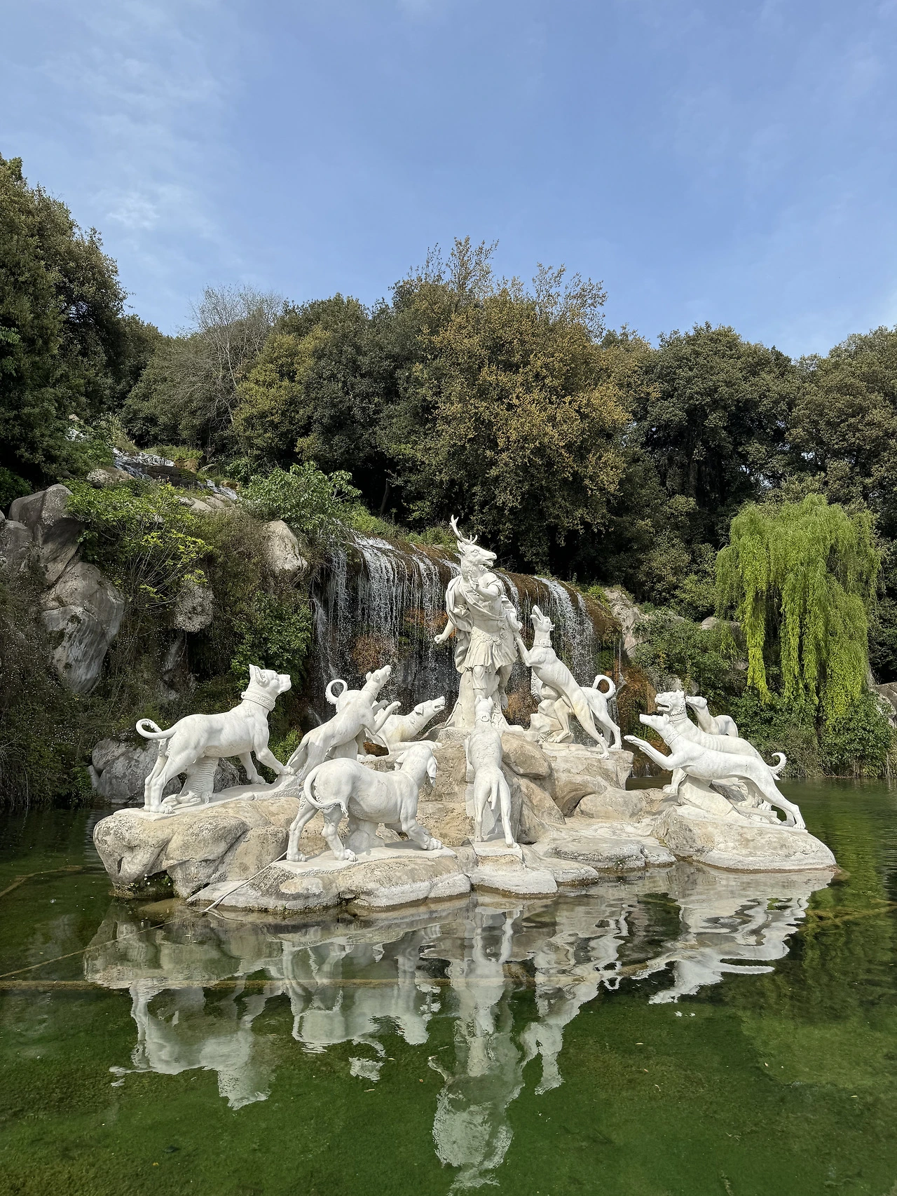 버스에서 내리면 이 분수가 제일 먼저 보인다. Fontana di Diana e Atteone. 그리스 신화를 본 사람이면 알 만한 장면이다. 아르테미스가 목욕하는 장면을 본 죄로 아르테미스의 저주를 받은 악타이온은 사슴으로 변하여 사냥개에게 물어뜯긴다. 악타이온의 사슴머리를 보니 마치 눈앞에서 변하는 모습을 포착한 것만 같이 생동감 있다.