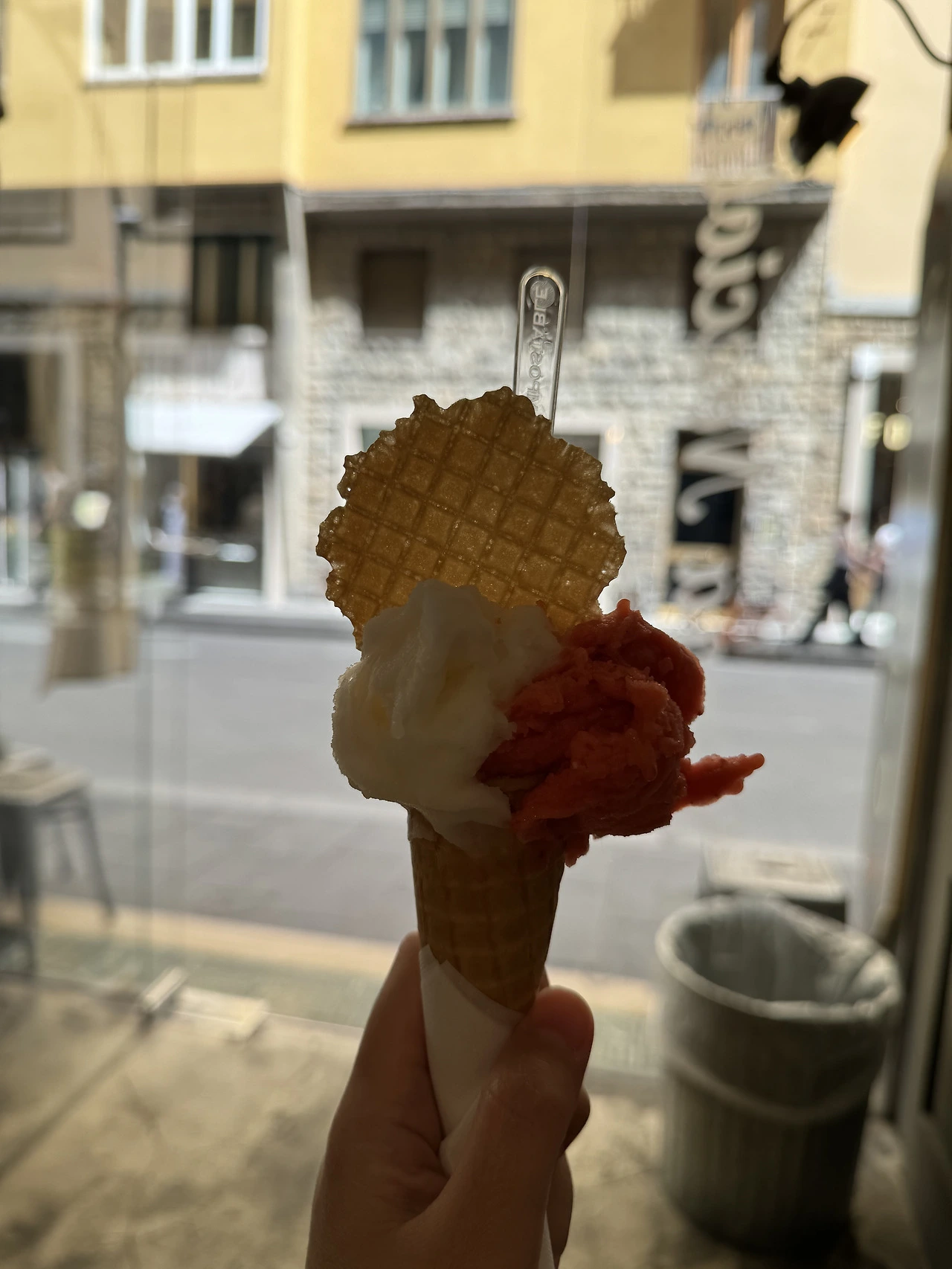 그 다음 목적지인 보볼리 정원으로 향하는 길, 이번 여행 첫 젤라또를 사먹는다. 베르가못맛과 딸기맛. 스몰. 이탈리아는 젤 작은 스몰 젤라또에 기본적으로 맛 두 가지를 넣어준다. 다행히 젤라또는 아주 맛있었다.