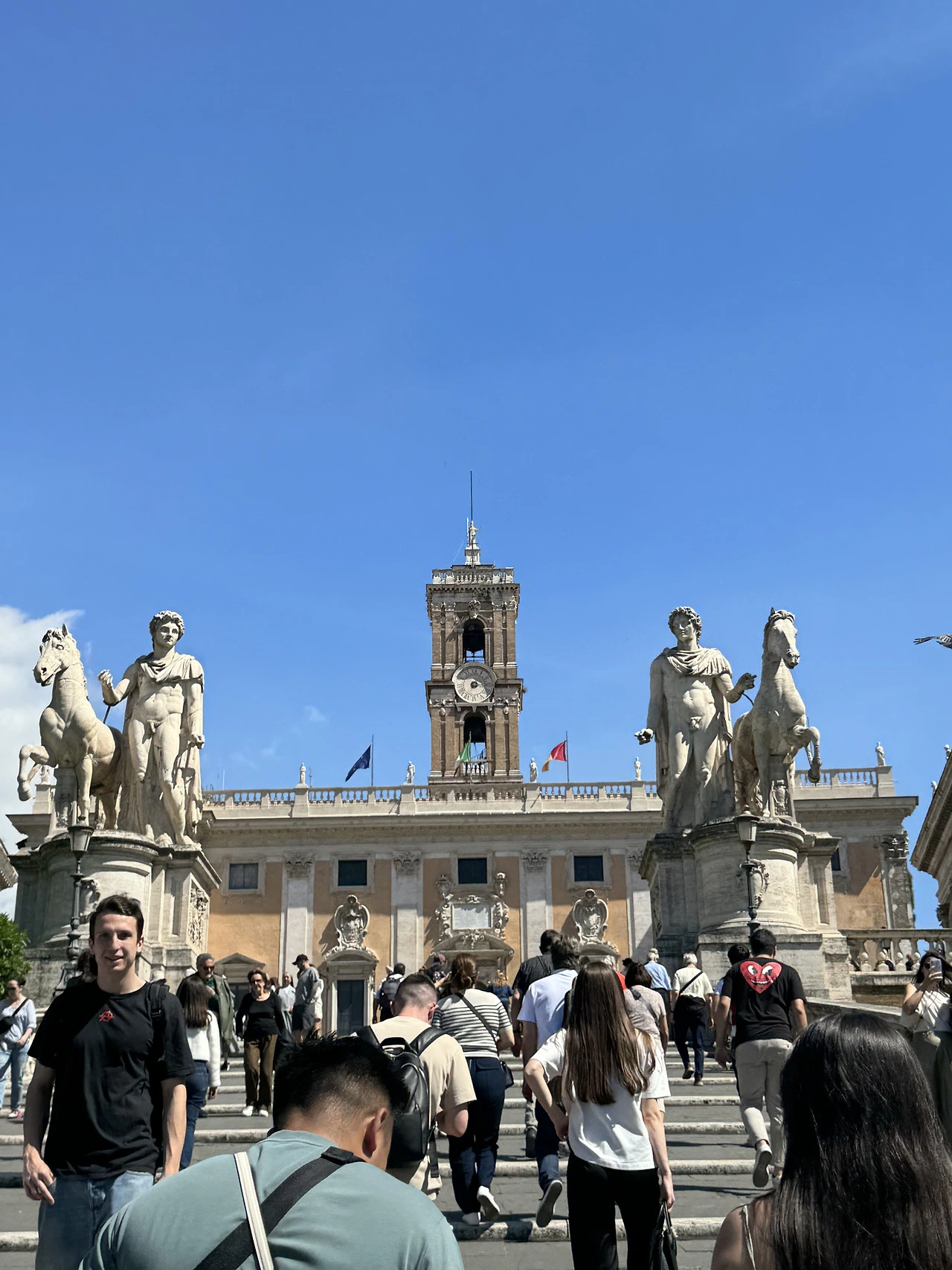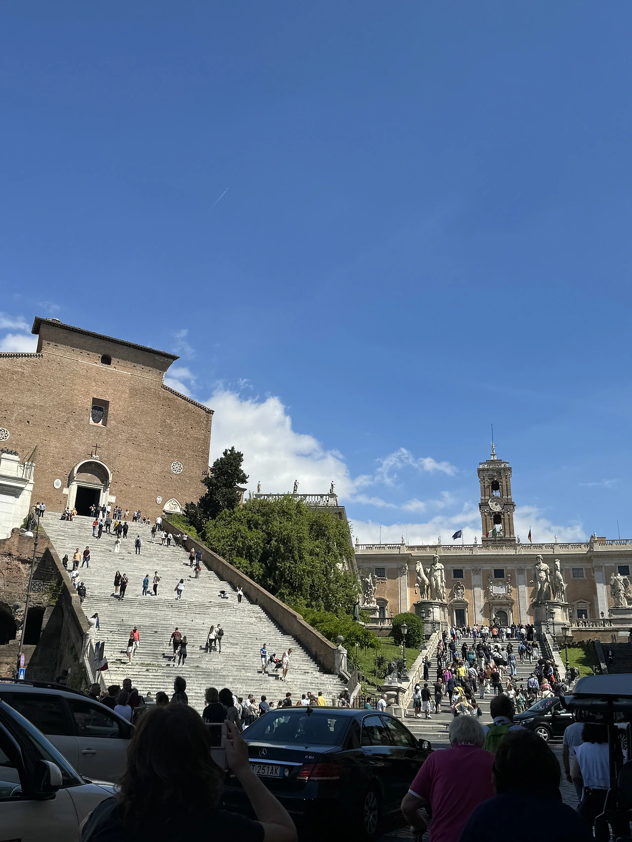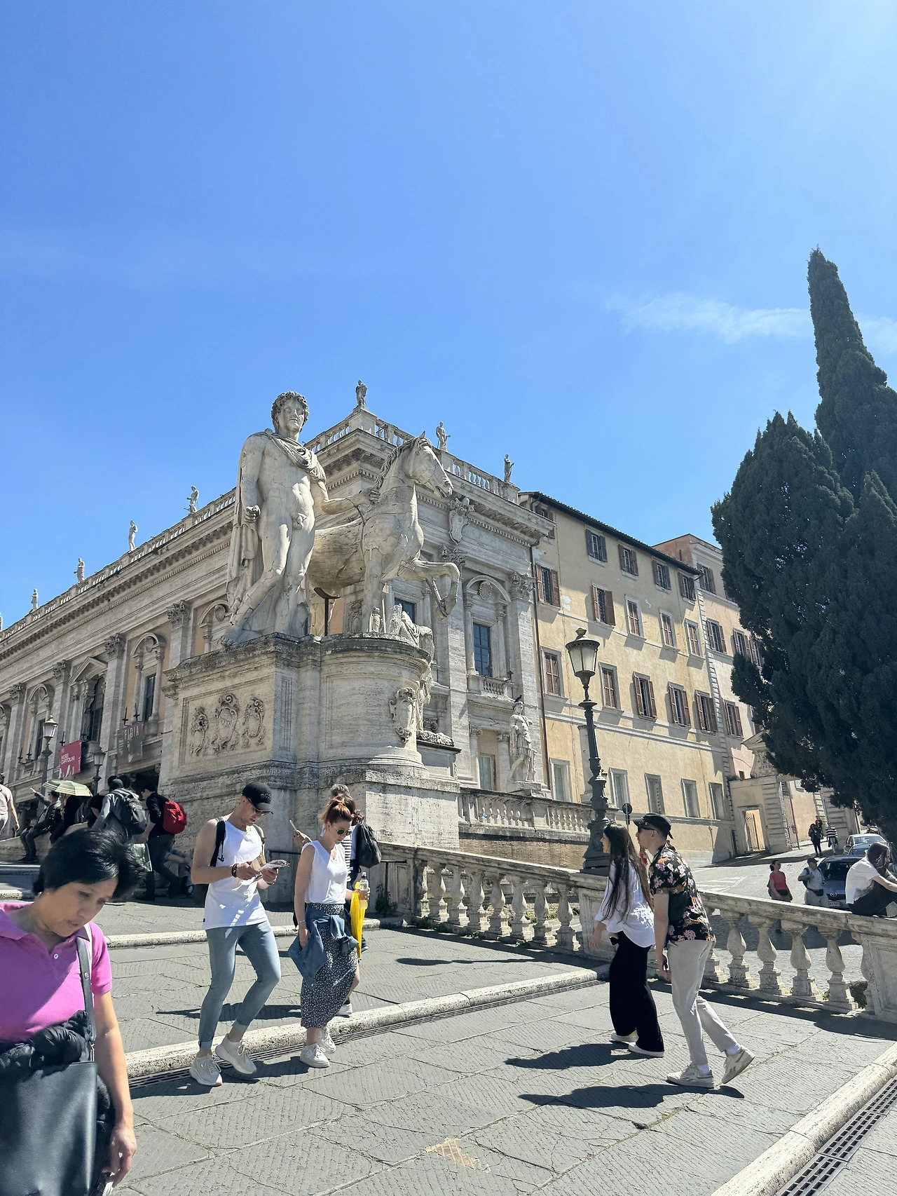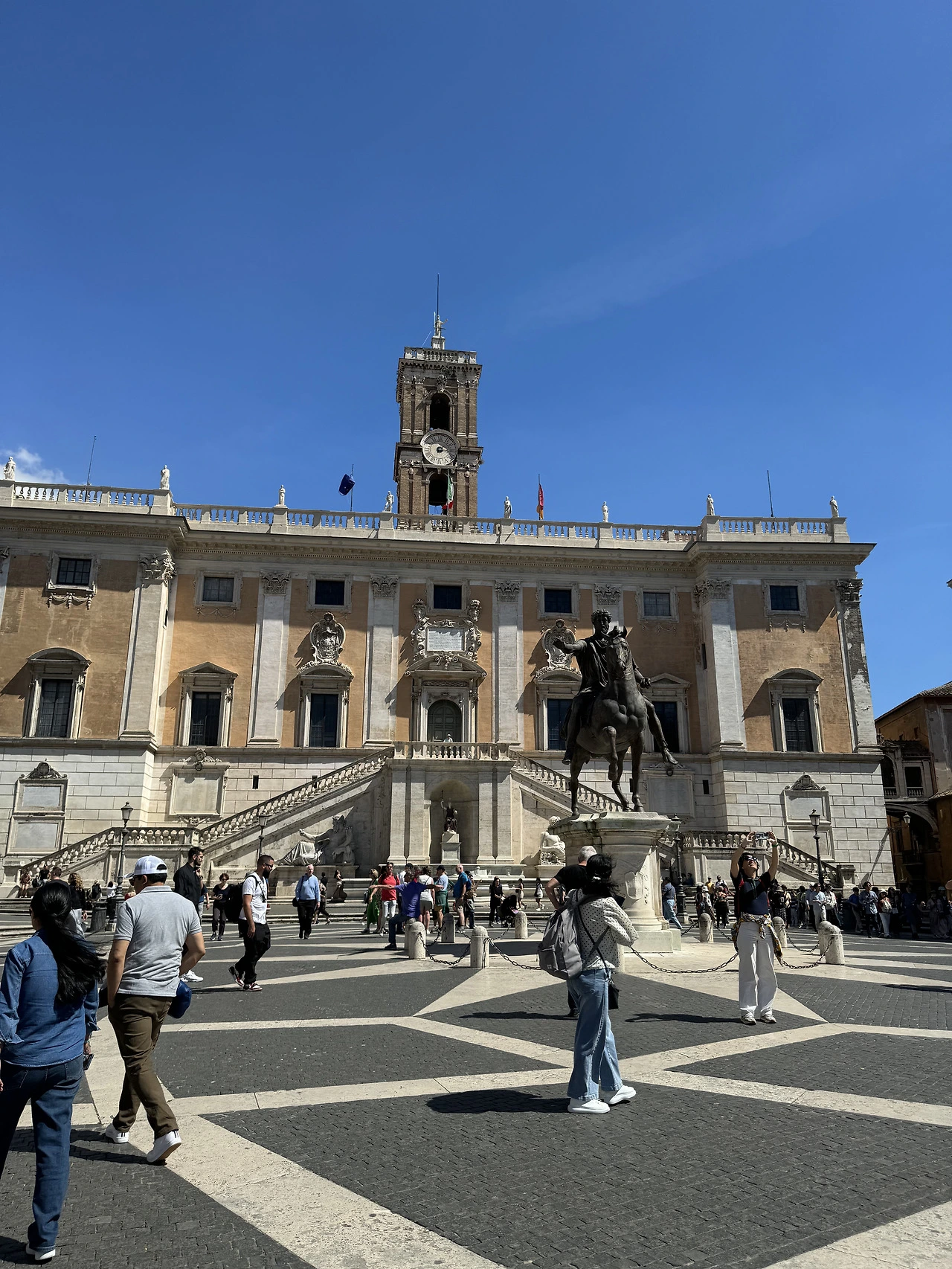 미켈란젤로가 설계했다는 캄피돌리오 광장이 나온다. 사실 이곳으로 올 생각은 전혀 없었고 포로 로마노를 향해 걷다 보니 자연스럽게 방문하게 된 것인데, 놀랍게도 예전에 왔었던 기억이 없다. 진짜 처음으로 왔나? 하긴 예전에 방문했다 하더라도 기억이 나지 않는다면 처음 온 거랑 다를 바 없다. 원근법을 활용한 착시현상이 보이는 계단과 광장 바닥에 그려진 방사형 무늬. 이 광장 구석에는 그 유명한 로물루스와 레무스의 동상도 있다 했는데 미처 발견하지 못했다. 로마를 세 번 왔는데 아직도 보지 못한 것이 있다니.