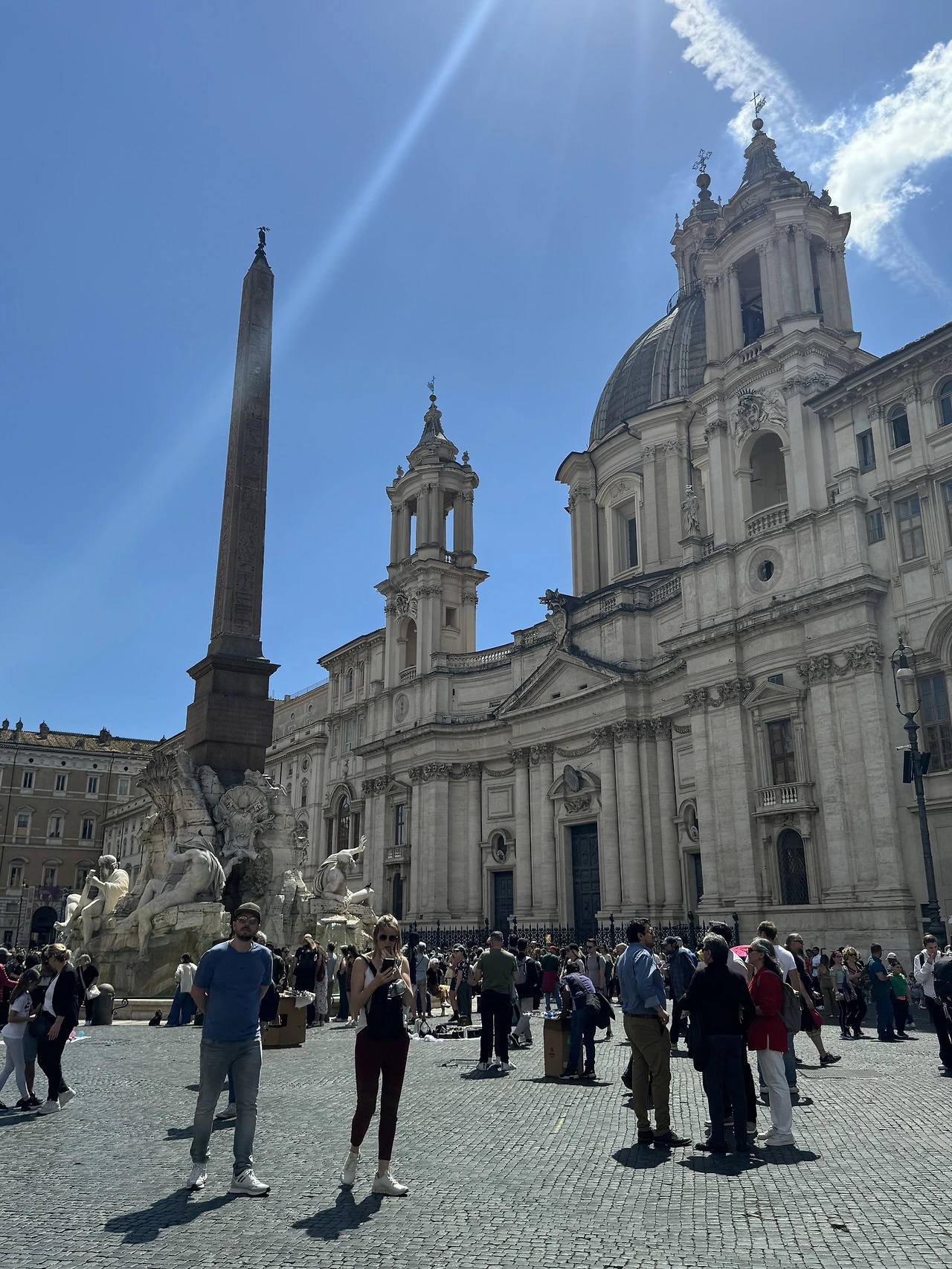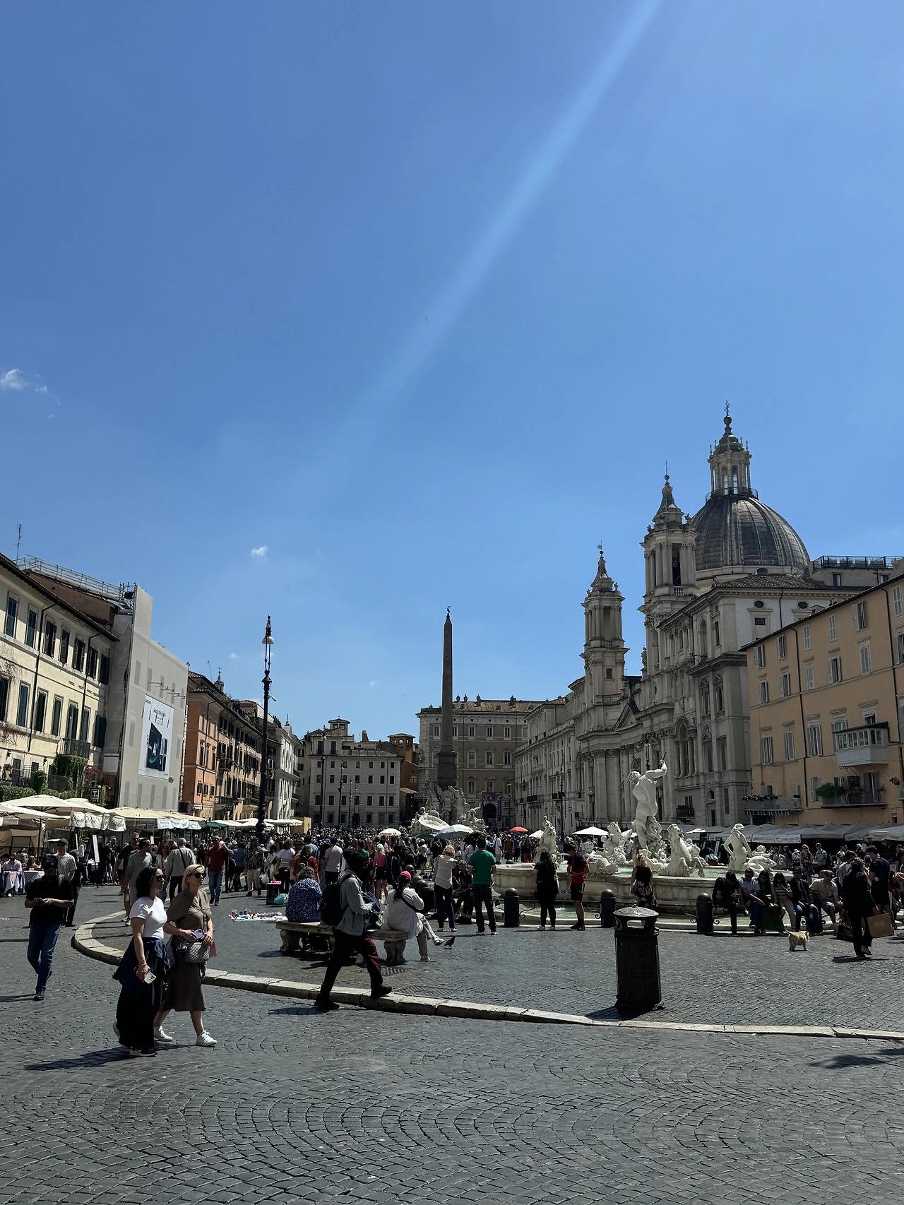 나보나 광장을 통과해서 걷는다. 오른쪽에 보이는 건물은 아고네 성당 Sant'Agnese in Agone이라 한다. 아그네스 성녀의 유골, 정확히는 두개골을 모시는 곳이다.