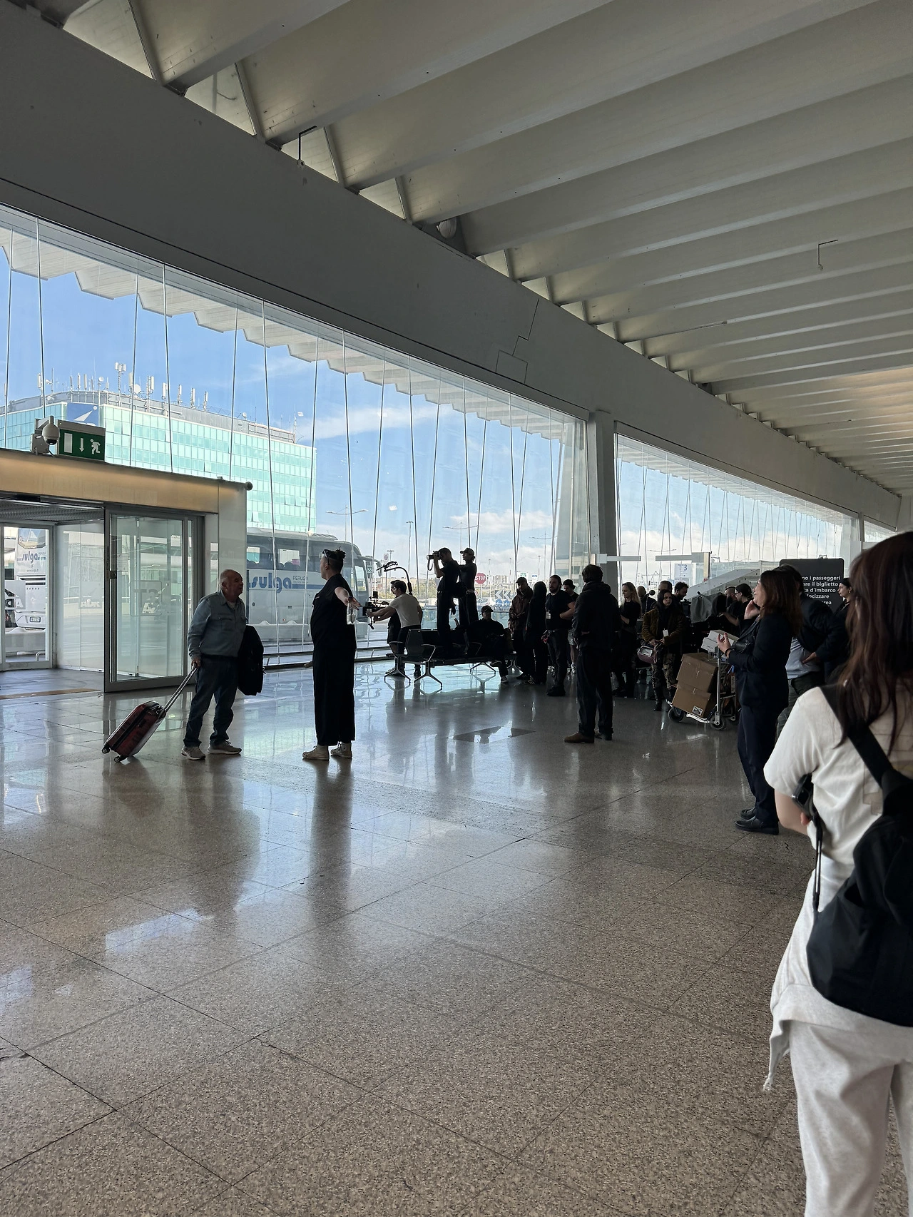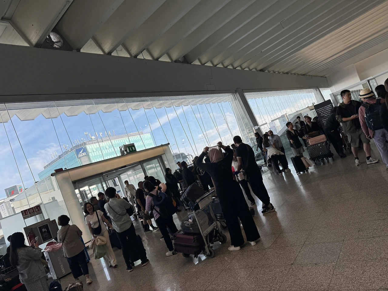 체크인 카운터로 돌아오니 줄이 길게 늘어서있다. 그쪽 입구에서는 무언가 촬영이 진행 중이었다. 사람들이 전부 핸드폰을 꺼내 찍고 있기에 나도 일단 사진부터 찍고 봤다. 키가 훤칠하게 크고 잘생긴 미남이 올 화이트를 입고 있었다. 공항 안으로 뛰어들어오는 것을 몇 번 반복하는 걸 보니 광고를 찍나 싶었다. 남자의 얼굴이 왠지 돌체 앤 가바나 향수 광고 모델 상이다.