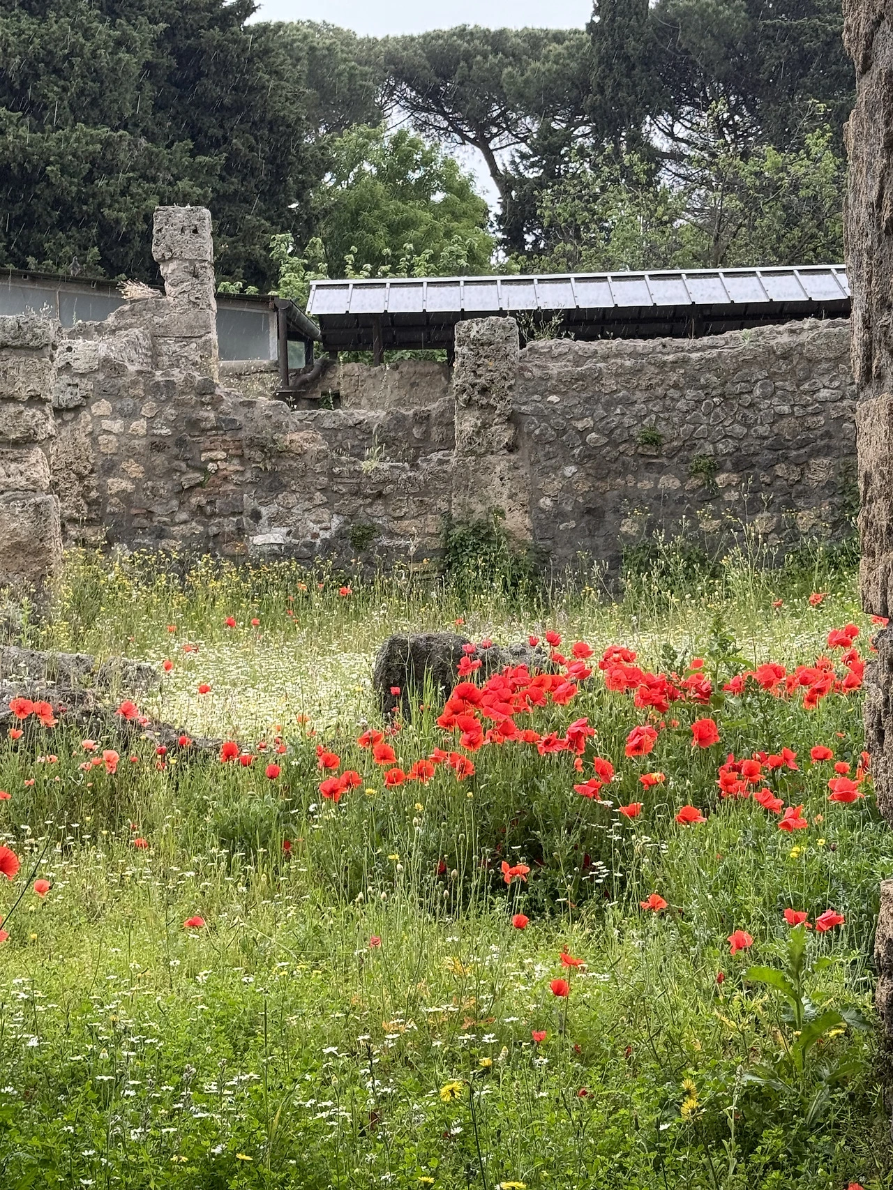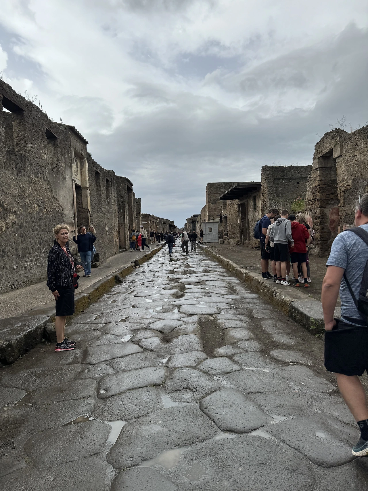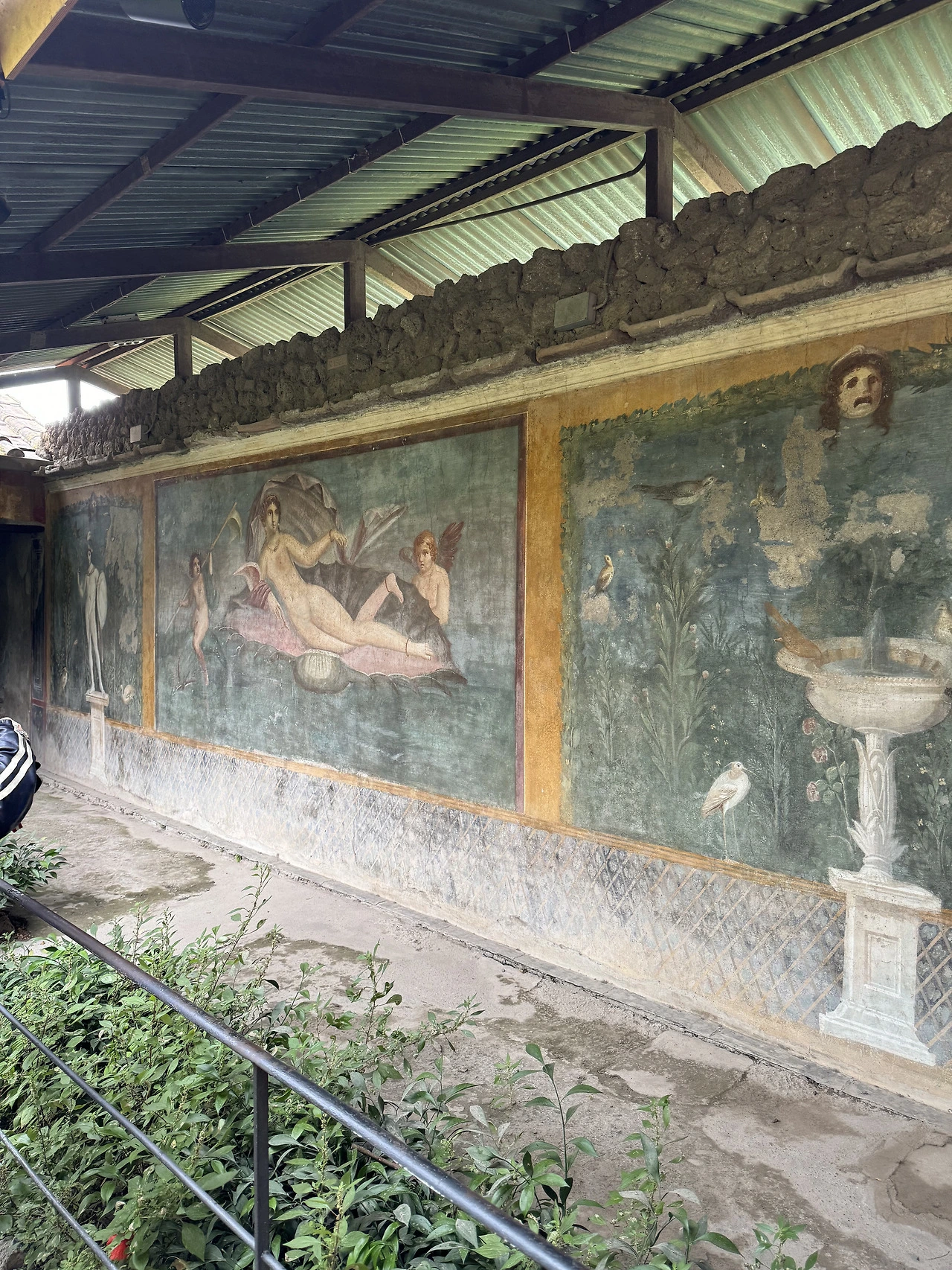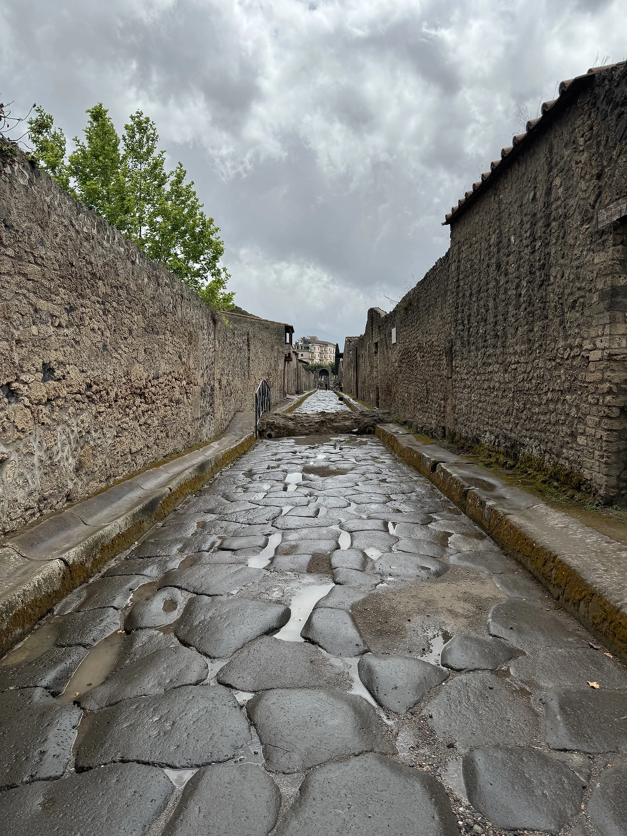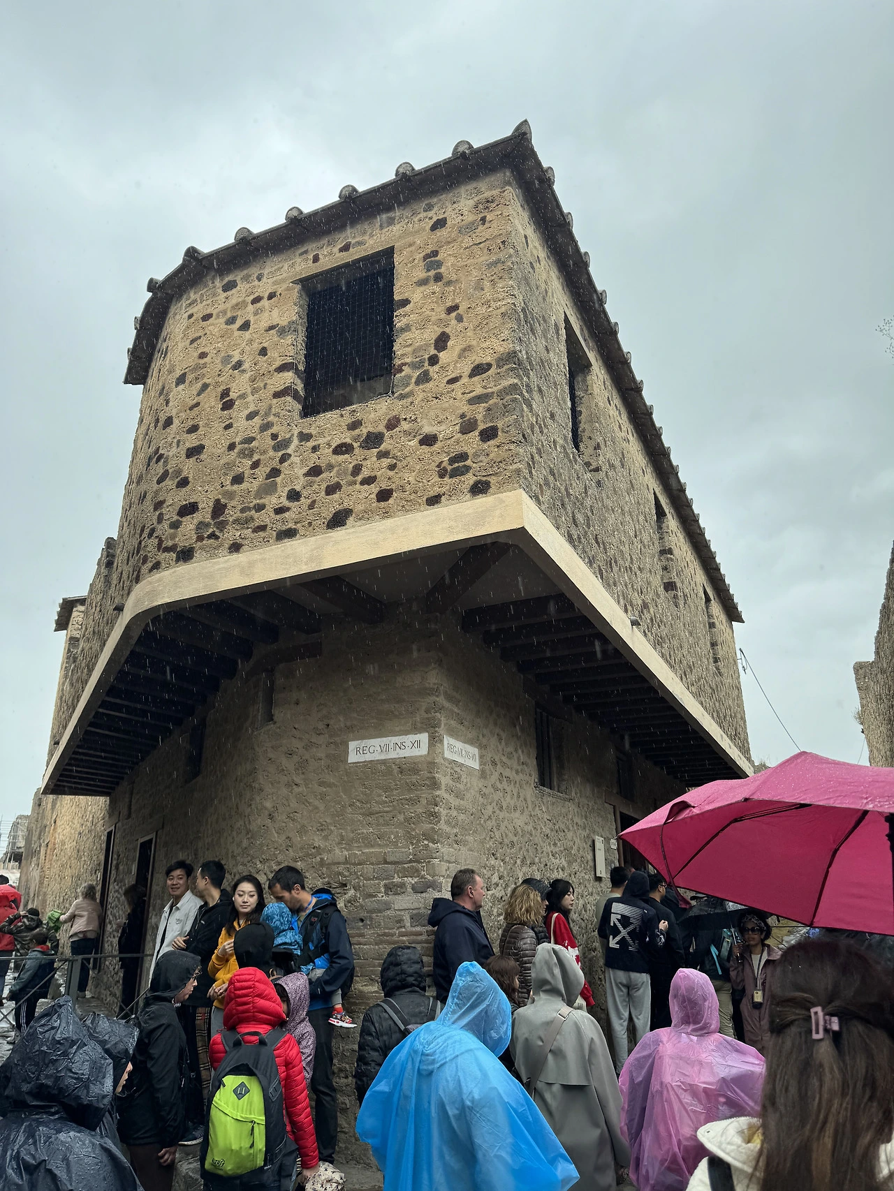 비가 한바탕 쏟아졌고 잔뜩 젖은 돌바닥은 미끄러워 무척 걷기 힘들었다. 폼페이 돌바닥은 생각보다 걷기 어려워 넘어졌다는 사람들도 꽤 많으니 조심해야 한다. 비는 계속 세차게 내렸다가 그치기를 반복했다. 내가 챙겨간답시고 챙겨간 양산은 바람에 속수무책으로 뒤집어졌다. 차라리 비옷을 챙길 것을 그랬다.