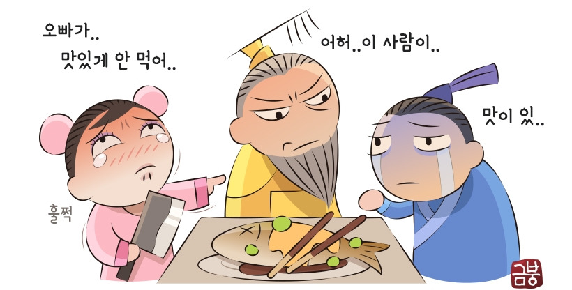 한편, 나라의 여왕은 공주의 부장품이었던 비단 베개가 시장에 돌아다닌다는 소문을 듣게 되었습니다. 크게 노한 여왕은 당장 도굴꾼을 잡아들이라는 명을 내렸고, 청년은 뚜까 맞고 곧바로 잡혀 왔습니다. 깜딱 놀란 청년이 여왕에게 자신이 겪은 기이한 일을 고하자, 딸의 이야기를 들은 여왕은 청년을 부마로 삼았습니다. 그 뒤로 공주의 남편을 부마라고 부르게 되었다는.. 아무리봐도 재치가 넘치는 도굴꾼이 어찌어찌 목숨 건진듯한 이야기도 전해 옵니다.
