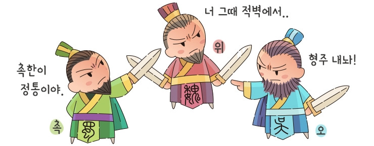 이렇게 한참을 투닥거리던 군웅들은 마침내 세 세력으로 갈라졌는데, 각각 승상 조조가 일으킨 위나라, 유비가 세운 촉나라, 강동의 주인 손권이 버티고 있는 오나라였습니다. 이 삼국의 이야기를 소설로 각색한 것이 지금도 널리 읽히는 "삼국지연의"입니다.