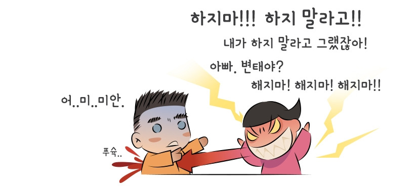 "니가 잘못했네. 다 큰 애한테 배 방구를 왜 해?"