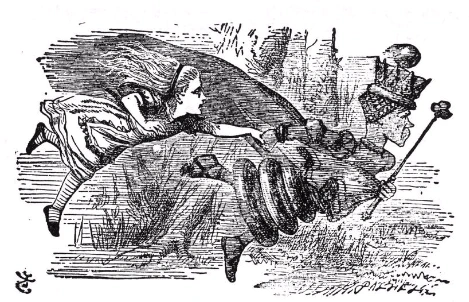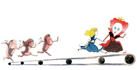 “자, 여기에서는 보다시피 같은 자리를 지키고 있으려면 계속 달릴 수밖에 없단다. 어딘가 다른 곳에 가고 싶다면, 최소한 두 배는 더 빨리 뛰어야만 해!” 여왕이 말했다 – 거울 나라 앨리스 중