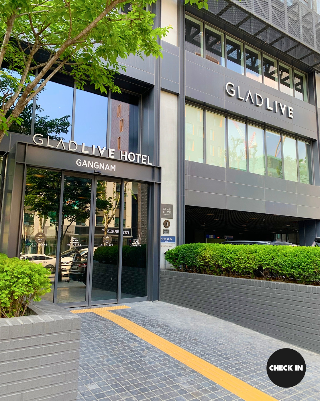 이 날은 차를 끌지 않았다. 언주역 4번 출구로 나와 3분 정도 걸으니 눈 앞엔 글래드라이브 강남이 서있었다. 일단 그 자리에 서서 예쁘게 사진 찍을 시간이 없다! 아이폰 카메라를 열어 카메라를 LIVE모드로 바꿔놓고 사진을 툭툭 찍으면서 글래드라이브 건물 안으로 들어간다.
