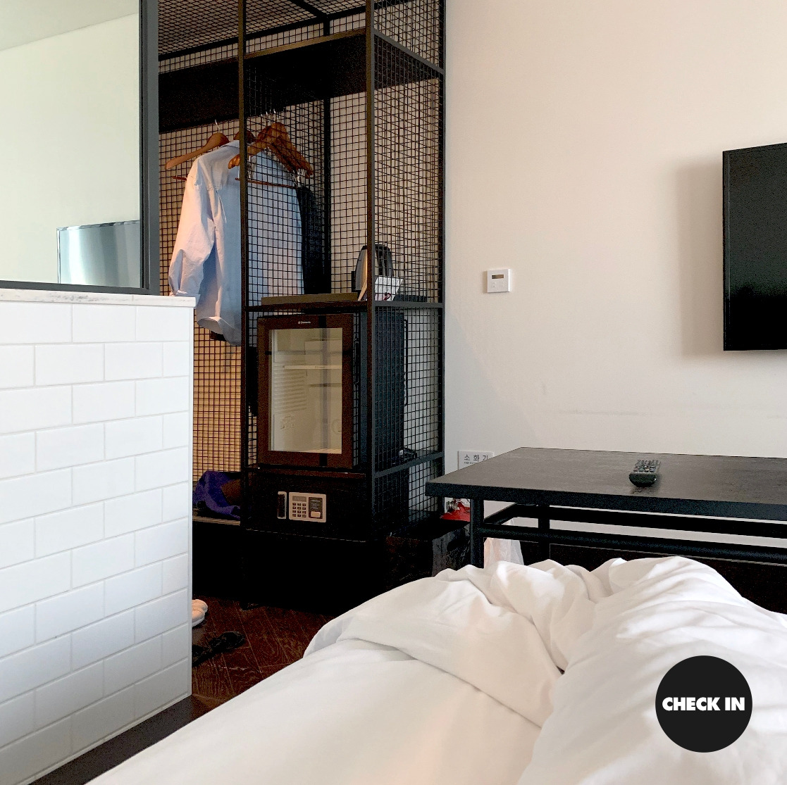 기계식 주차장에 지인의 차량을 잠시 넣어놓고 같이 객실로 올라온다. 아쉽게도 글래드 라이브 호텔은 룸서비스가 별도로 제공되지 않는다.
