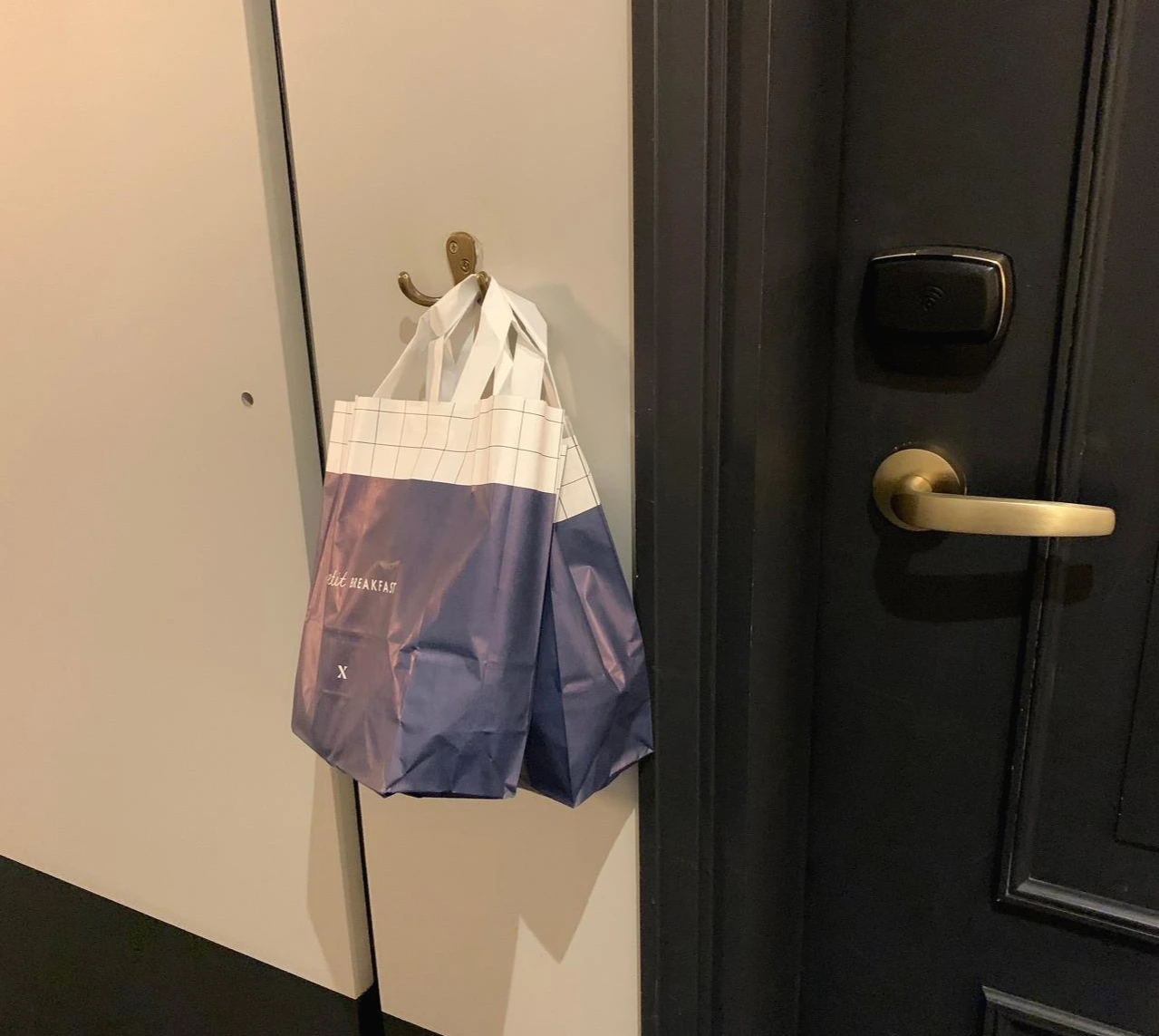 귀엽게 객실 현관문 문고리에 걸어놓고 잔 다음 아침에 일어나면!