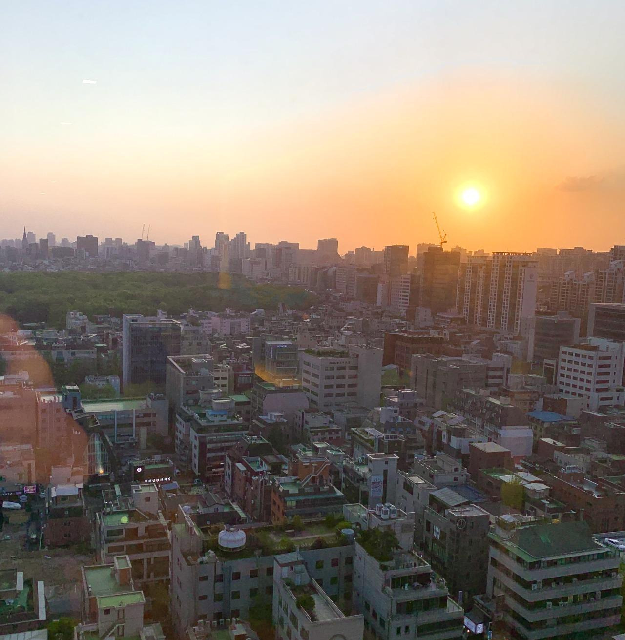 푸른 숲은 없어도 대신 건물 숲들 사이에서 아래 사진과 같이 일몰을 볼 수 있다는 건 정말 큰 행운이라 생각합니다.