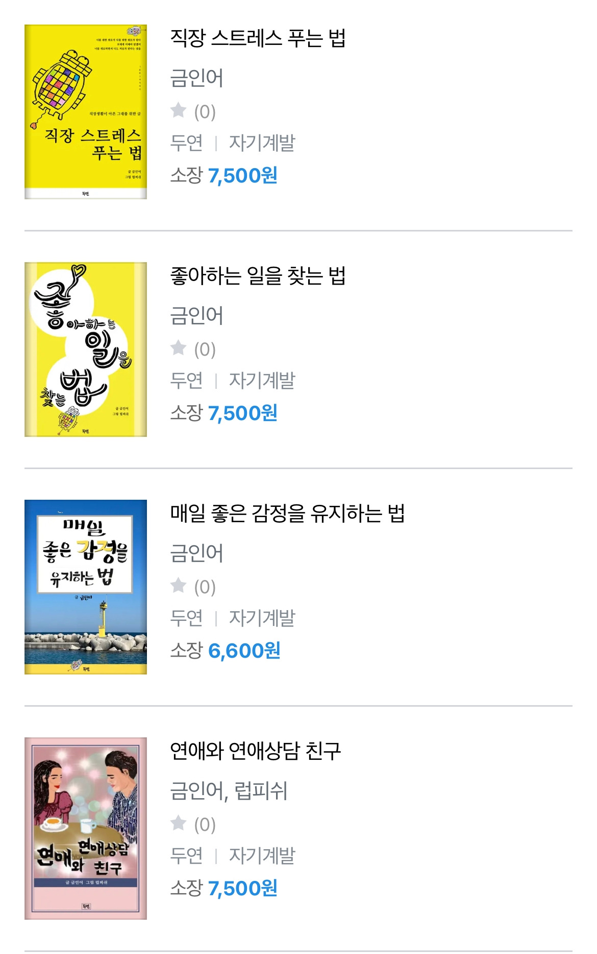 [직장 스트레스 푸는 법], [좋아하는 일을 찾는 법], [연애와 연애상담 친구], [매일 좋은 감정을 유지하는 법]