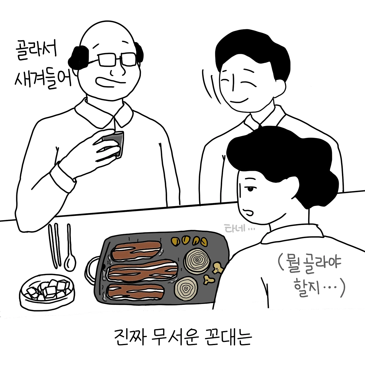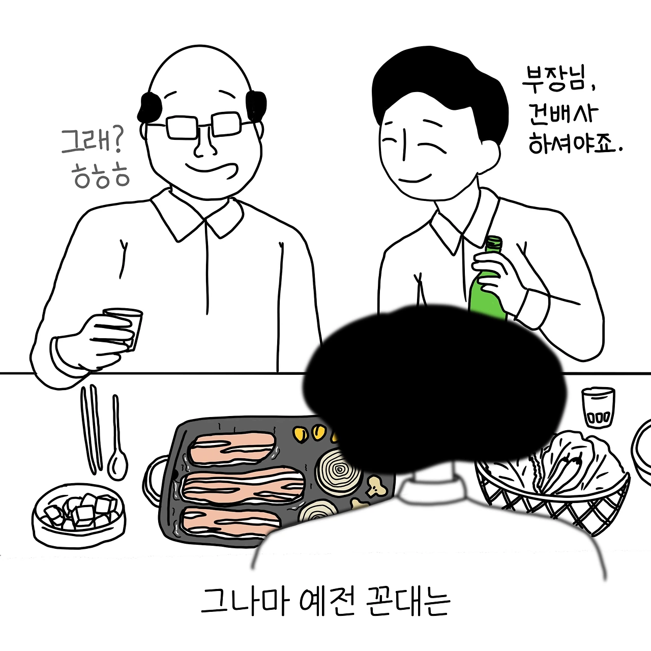 부장님 저희 할아버지 때는 뒷산에서 소나무 껍질을 벗겨다가 끓여드셨대요.