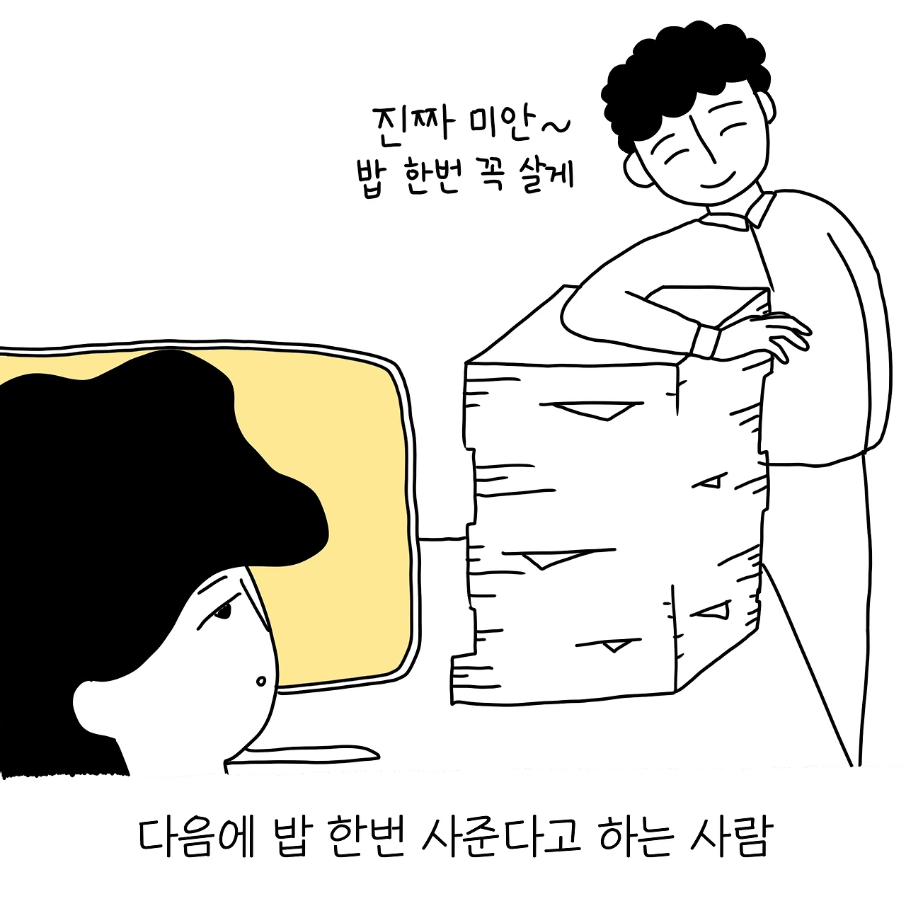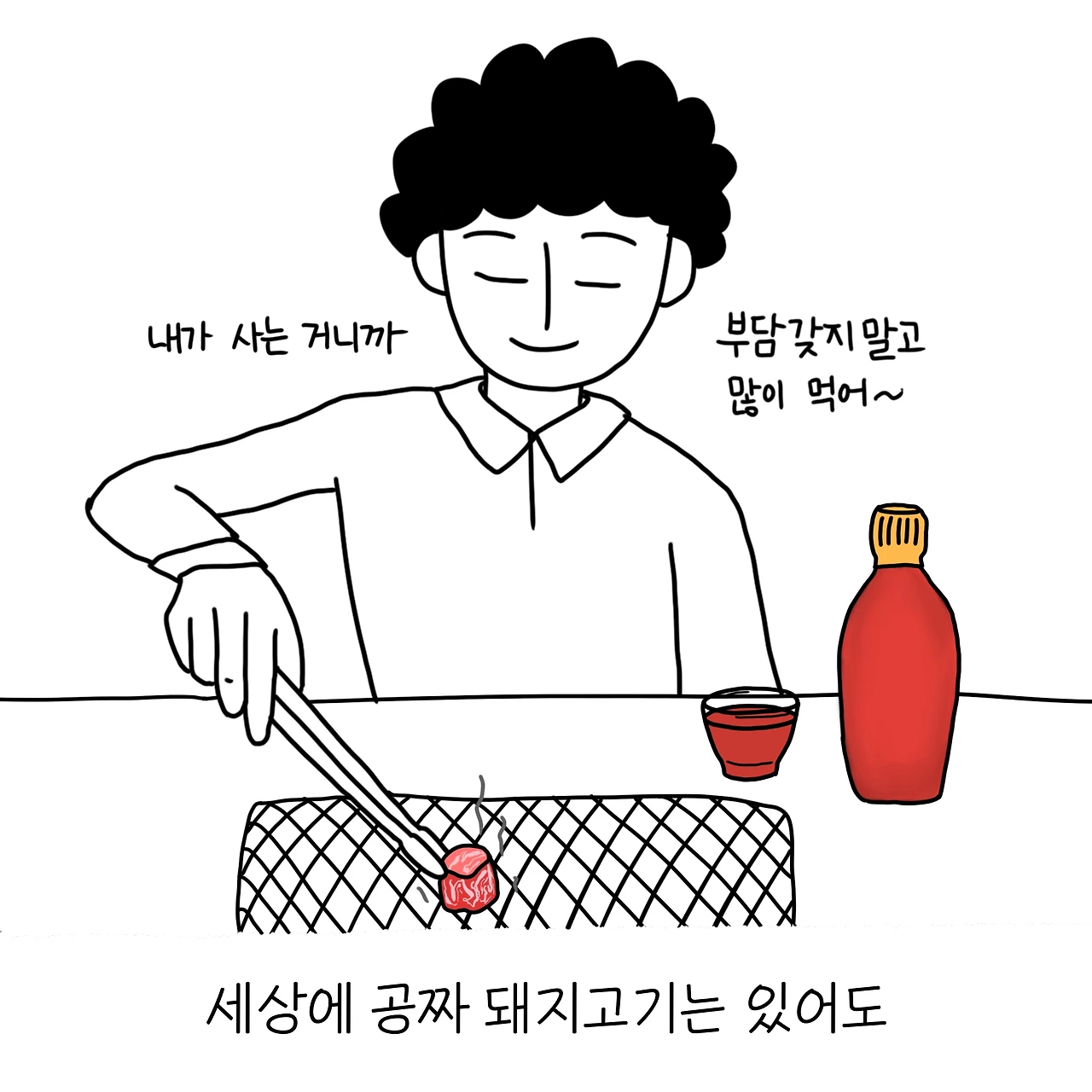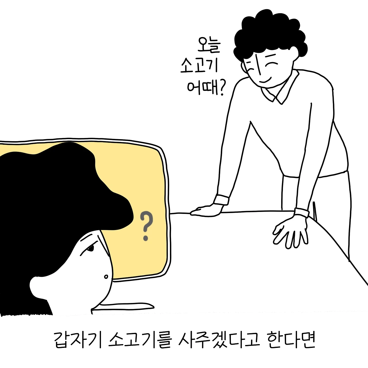 그런 사람이 있다갑자기 일을 떠넘기면서 다음에 밥 한번 사준다고 하는 사람밤샘 노동의 대가를 늘 밥 한 끼로 대신하는 사람 그런 사람이 갑자기 소고기를 사주겠다고 한다면 반드시 이유가 있다 세상에 공짜 돼지고기는 있어도 공짜 소고기는 없다