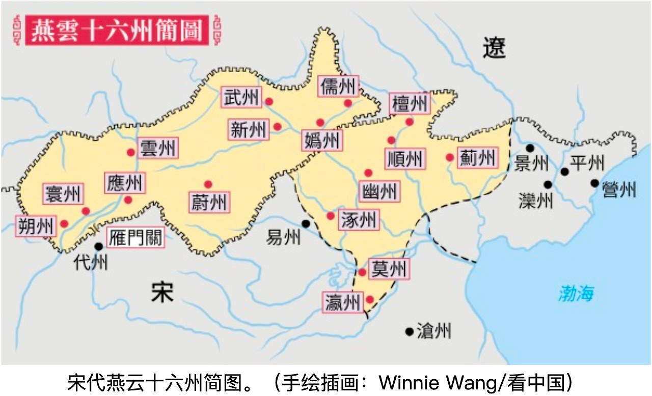 한족에게는 북방 이민족으로부터의 중요한 방어선이자, 지금의 북경과 대동을 포함한 주요지역이 포함되어 있었는 알짜배기 지역으로 막대한 생산량을 자랑하고 있었다. 전통적으로 한족이 생각하는 한족의 영역이었다.