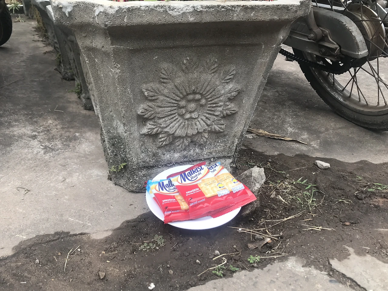 보통 바나나 등의 과일, 음료수, 찹쌀밥 등을 두는 경우가 많아 개미가 쉽게 꼬이거나 길거리 개들이 먹고 흩트려놓는 경우도 많은데,