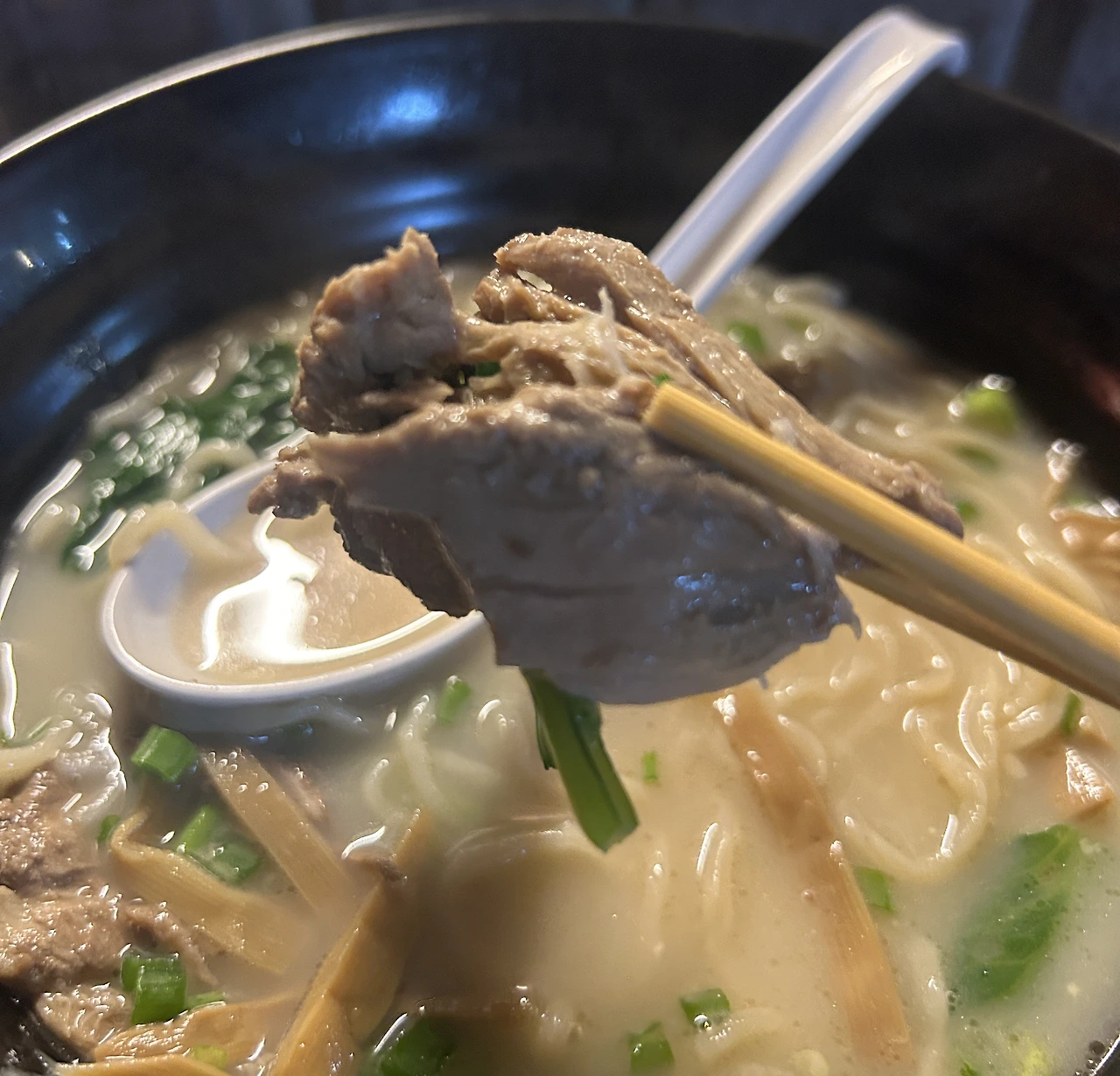 기름기가 거의 없을 정도로 담백하고 깊은 육수. 불필요한 재료는 전혀 없는 돈코츠 라멘.