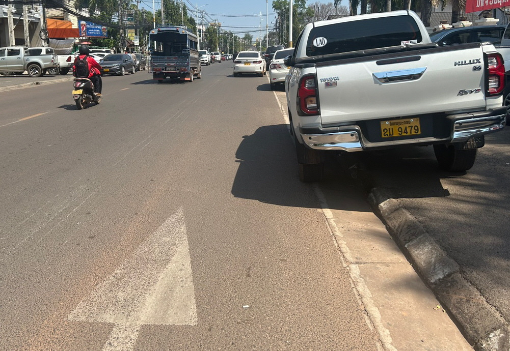 라오스 시내의 도로가 넓어봤자 2차 선임점을 감안하면, 불법주정차 차들로 인해 1차선으로 변하고, 갑자기 달리던 차들은 앞에 불법 주정차되어 있는 차들로 인해 갑자기 차선을 바꾸고 끼어든다.
