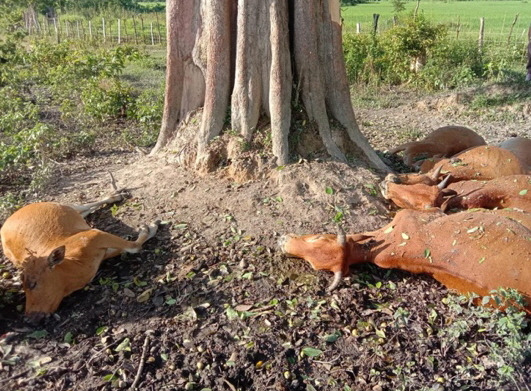 번개를 맞은 나무, 그리고 그 주위에 있던 소들.