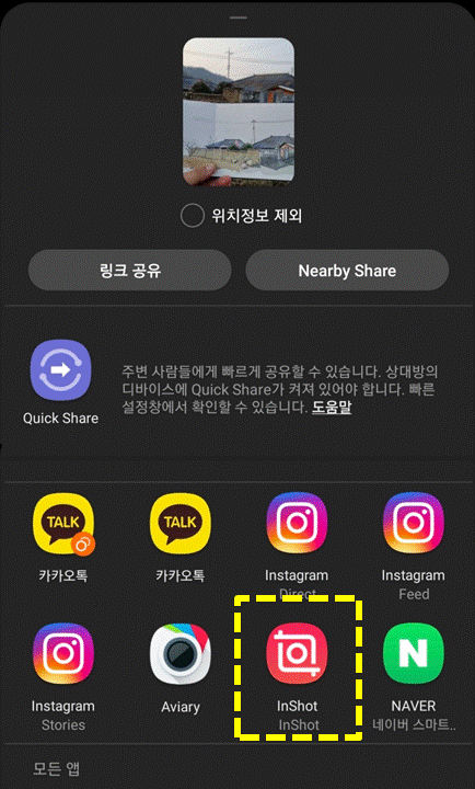 이럴 때 저는 ‘InShot’이라는 어플로 사진을 같은 비율로 수정하여 사용합니다.