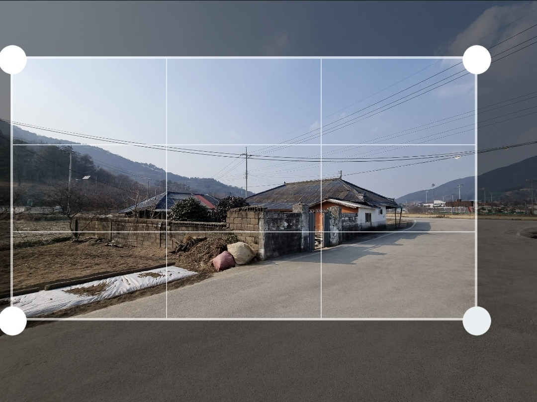 우선 원하는 풍경을 사진으로 찍었습니다. 저는 귀퉁이가 잘린 집은 싫거든요. 크게 원경으로 수평만 잘 맞추어서 대충 찍고 그릴 종이에 맞춰 적당한 비율로 잘랐습니다.