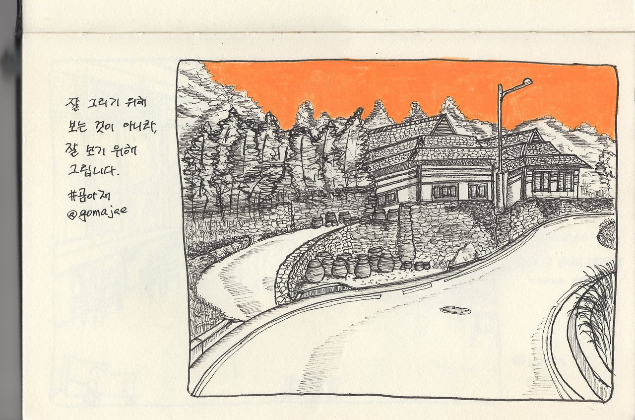 오픈 채팅방에는 길게 공지를 올려놓고, 어반스케치에 대해 소개하고, 채팅방은 그림을 알려드리는 곳이 아니라 서로 응원하고 격려하는 곳임을 알리고, 조금 더 적극적으로 교류할 것을 권하고 있지만... 그게 또 잘 안됩니다.