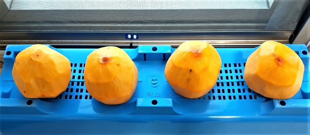 갑자기 호기심이 발동했다. 나도 곶감을 만들 수 있을지 궁금했다. 검색해보니 찬바람이 잘 부는 곳에 감을 깎아 매달아 놓으면 된다고 했다. 할 수 있겠다 싶어 재료들을 찾았다. 매달아 놓을 세탁소용 옷걸이도 있고 매달릴 수 있는 대봉감꼭지도 잘 붙어 있었는데 그것들을 연결시킬 실이 없었다. 순간 실망감과 게으름이 동시에 찾아왔다. 그만하고 그냥 홍시로 둬야겠다고 생각하고 돌아서려는데 해가 천천히 뜨는 것이 보였다. 그만두지 말고 한 번 해 보라고 웃어주는 듯했다. 그래, 감을 말리는데 꼭 매달아야만 하는 건 아니잖아. 주변을 둘러보았다. 여분의 화분이 눈에 띄었다. 그것을 뒤집어 놓고 감을 깎아 창문 앞에 두었다. 떫은 감을 깎아두었을 뿐인데 곶감이 벌써 내 입속에 있는 듯 침이 고였다. 또 다른 기다림의 맛이었다.