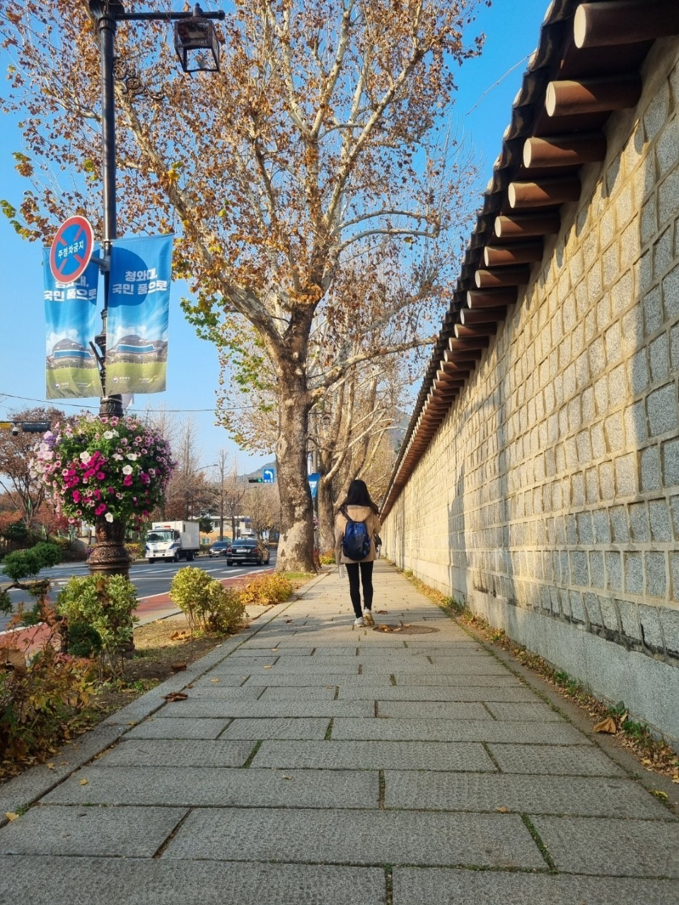 서울의 길은 끝없이 이어져 있었다. 혼자도 걷고 학생들과 걷고 동료 교사와 걸었다. 혼자 여행하는 날에는 브런치 친구인 오월 나무 님과 함께 서울을 걸었다. 작가님께서 안내해주셔서 청계천에서 광화문을 지나 경복궁과 청와대를 거쳐 북촌 한옥마을까지 걸었다. 작가님, 세종대왕 그리고 나 이렇게 셋이서 찍었던 사진을 보니 새삼 새롭다. 나의 하루가 함께 걸었던 길 속에 온전히 들어가 있다. 경복궁 뒷길을 얼마나 많은 사람들이 지나갔을까. 길은 무슨 마음으로 모든 사람들의 발걸음을 다 받아주고 있을까. 내 작은 발걸음 하나에도 그만의 이유가 있을 것이다. 나란히 함께 걸었던 작가님의 발걸음도 그럴 것이다. 두 명이 한 길을 함께 걸었다. 다리가 아픈 것도 잊고 이야기를 하다가 길을 놓치기도 하면서 온전히 서로에게 집중하며 걸었다. 그렇게 우리들만의 역사가 만들어졌다. 나는 그것을 잊지 않기 위해 기록 중이다.