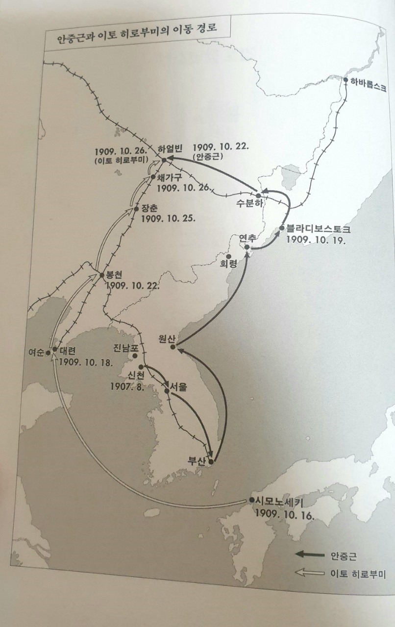 인터넷 포털 사이트에 '안중근'을 치면 '이토 히로부미'가 나오고 '이토 히로부미'를 치면 '안중근'이 나온다. 평생 한 번밖에 만난 적 없는 두 사람은 죽음으로 연을 맺어 100년이 넘도록 함께 역사 속에 남아 있다. 1909년 10월 26일 오전 9시 15분, 이토가 타고 있던 열차가 하얼빈 역에 도착했다. 모든 열차들이 지나가는 역이었다. 안중근은 하얼빈 역은 이토가 죽기 좋은 장소이고 자신이 총을 쏘기 좋은 장소라 판단했다. 이토를 죽이고 세상을 향해 해야 할 말이 있었기에 하얼빈 역은 많은 사람들이 안중근의 말을 들을 수 있는 적절한 곳이었다.