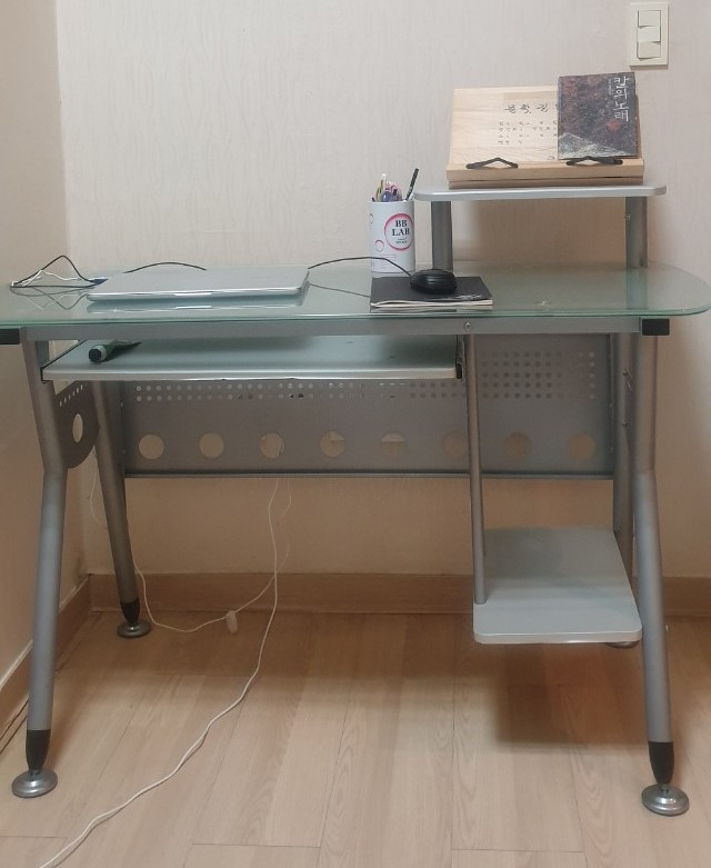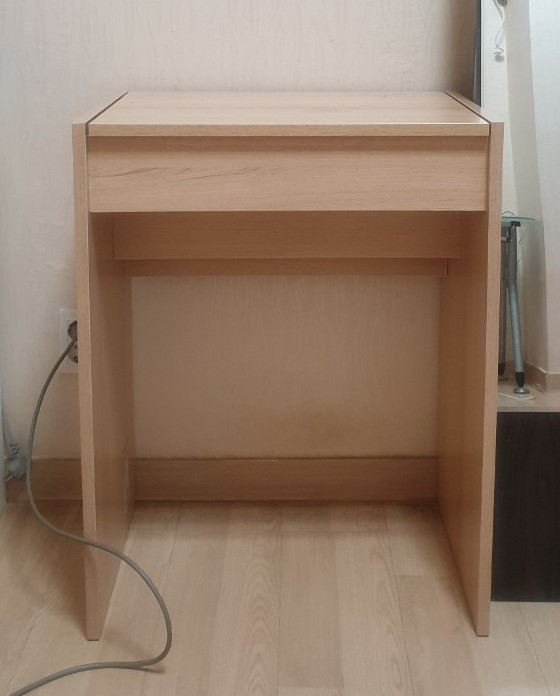 나의 원래 책상은 화장대와 밥상을 겸한 것이었다. 학생책상만 한 크기라 화장을 할 때는 뚜껑을 열고 화장품을 꺼내 썼고, 글을 적을 때는 뚜껑을 닫고 노트북을 얹었다. 필사를 할 때는 노트북을 빼고 독서대와 공책을 놓았다. 다행히 화장대 옆에는 노트북과 독서대를 번갈아 가며 놓을 수 있는 공간이 있었다. 밥을 먹을 때는 둘 다 빼야 해서 하나는 바닥으로 가야 했다. 매번 물건을 옮기는 것이 일이긴 했지만 화장대는 좁은 공간에도 여러 가지 용도로 쓸 수 있는 요긴한 가구였다. 처음에는 더 낮은 책상을 사용했었기 때문에 화장대에 대한 불만은 없이 지냈다고 생각했다.