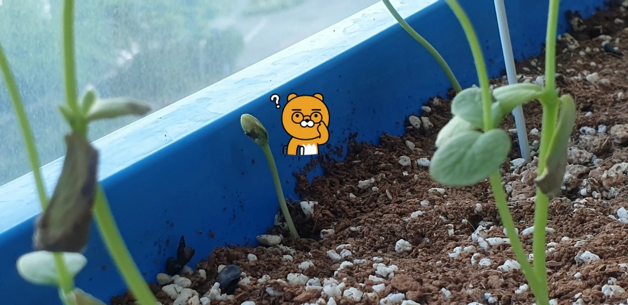 콩을 도와준 것인지 오지랖을 부린 것인지 아직 나는 모른다. 대화가 되지 않는 우리는 이 새로운 상황을 각자가 이해할 수밖에 없다. 나는 선 넘는 일을 저지른 입장이었다. 며칠을 두고 작은 콩의 움직임을 살펴볼 생각이다. 그 속에 분명 나에게 줄 신호가 들어 있을 것이다. 고마웠을 수도 있고 귀찮았을 수도 있다. 속사정이 어떻든 조금만 더 크면 곧 화분을 넘어선 바깥 풍경을 볼 수 있을 거니 힘을 내서 올라왔으면 하는 바람이다. 덩치 큰 친구들 사이에서 작은 친구가 힘을 내고 있다. 세상이 무섭지 않을까 싶어 괜히 마음이 쓰이는 건 그 작은 모습 속에 내가 보이기 때문일 것이다. 작아도 괜찮다고, 늦게 올라와도 괜찮다고, 아직 봄은 완전히 시작되지도 않았다고 속삭여본다. 진짜 괜찮으니 조금씩 올라오면 좋겠다.