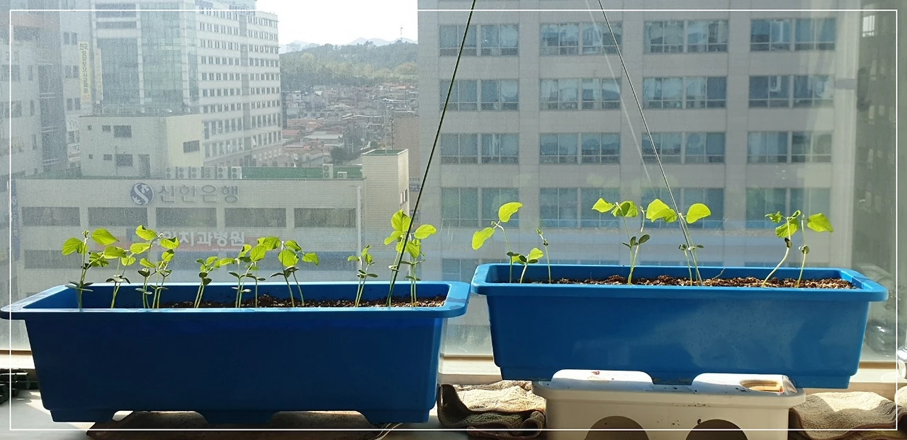 콩들은 무섭게 자라고 있다. 새벽이 되면 잎을 세워 하루를 살 준비를 하고 저녁이 되면 잎을 늘어뜨려 잘 준비를 한다. 처음 콩을 키울 때에는 저녁에 잎이 처져 있는 것을 보고 걱정을 했었다. 혹시 아픈 것이 아닌가 싶어 물과 영양분을 더 줬는데 아침에 일어나 보니 나보다 더 생생하게 잎을 펴고 햇볕을 향해 있는 게 아닌가. 식물도 저녁에는 쉰다는 것을 그때 알았다. 콩의 언어를 하나 알게 된 날이었다. 하긴, 그렇게 쑥쑥 자라려고 애를 쓰는데 쉴 때는 쉬어야지. 그들도 무뚝뚝하게 서 있기만 한 것이 아니라 나를 보고 나름 말을 걸고 있는 것으로 해석했다. 함께 지내는 느낌이 났다.