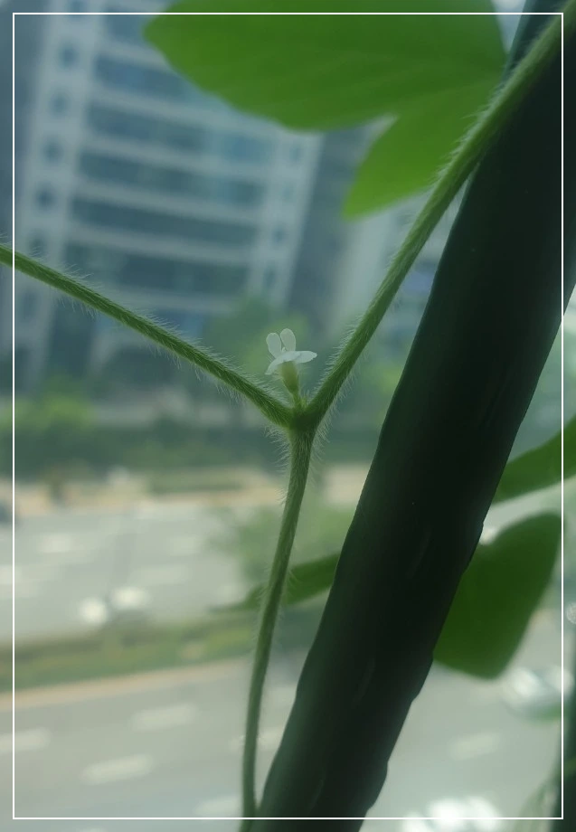 콩꽃이 피었다. 새끼손톱 크기보다 작다. 자세히 보지 않으면 놓치고 지나갔을지도 모른다. 서툰 내 눈에라도 띄어줘서 고맙다. 혹시 놓치고 있는 다른 꽃이 있나 싶어 콩을 심어 놓은 두 화분을 열심히 훑었으나 꽃 필 시기가 아닌 건지 다른 꽃은 없었다. 각도를 잘 잡아 사진을 찍는다. 실제 꽃의 아우라를 사진에 다 담을 수 없어 아쉽다. 예쁜 꽃을 보는데 마음이 싱숭생숭하다. 아무래도 작년에 콩꽃이 피고 지는 것을 모두 본 후라 그럴 것이다. 반가운 만큼 슬픔이 올라온다. 희고 작은 꽃은 곧 어미로 변해 그 속에서 콩꼬투리를 키워내며 시들어갈 것이다. 오늘의 꽃이 너무 아기 같아 더 안쓰럽다. 예쁜 것을 예쁜 것으로 보지 못하는 것도 병이다. 꽃도 좋아하지 않을 이 마음이야말로 오지랖이 아닐까 싶어 이내 마음을 고쳐먹는다. 그리고 꽃을 다시 본다. 새하얀 꽃이 앙증맞다. 만져보고 싶지만, 너무 작아서 만지지 않기로 한다. 콩꽃이란 이름은 누구 엄마라고 불리는 호칭 같아 본모습을 다 담지 못하는 듯하다. 그 이름 너머에 꽃이 있다. 꽃은 꽃 자체만으로 예뻤다.