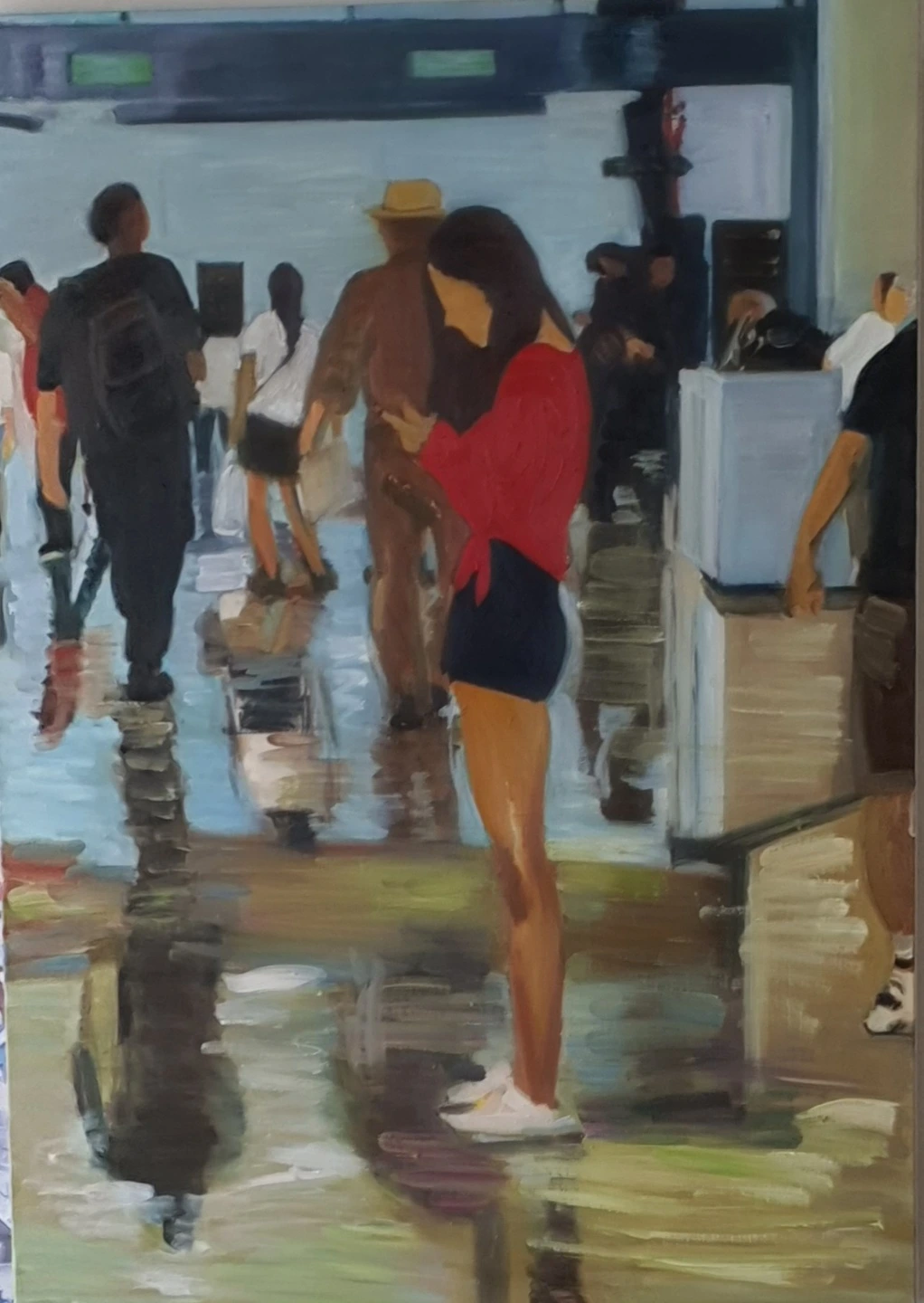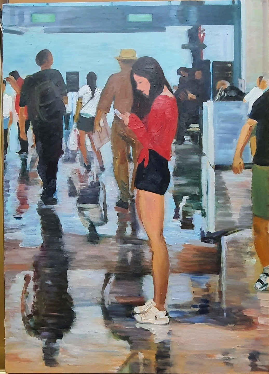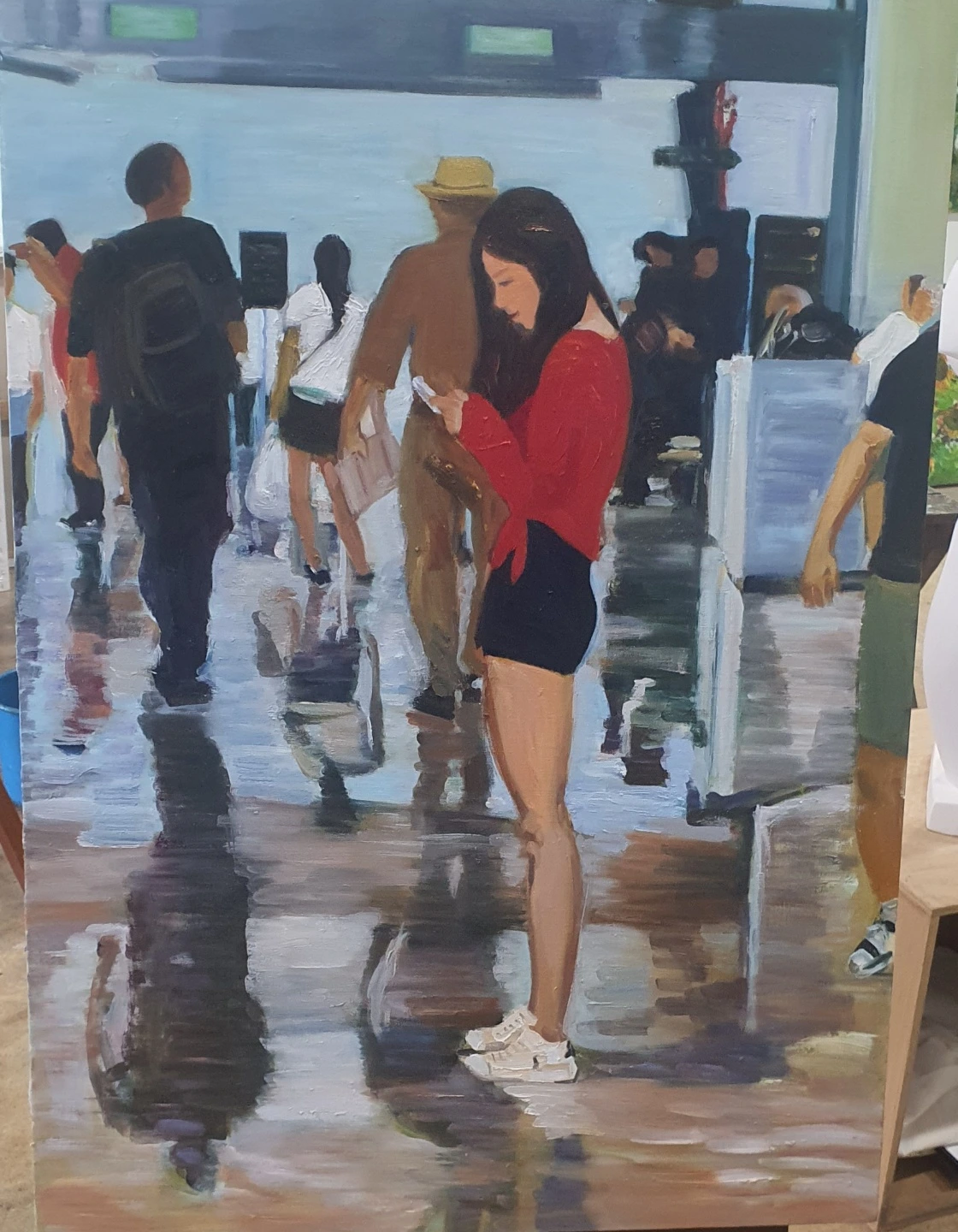 가족여행에서 찍은 내 사진이 엄마의 승은을 입고 캔버스에 그대로 녹아들기 시작했다. 스케치부터 그림자의 농도가 완성될 때까지 엄마는 몇 달 동안 내 사진을 보고 또 봤다. 완성된 그림이 내 방에 걸릴 때도 좋았지만 그동안 그림이 그려지는 과정에서 그림 설명을 하며 신나 하시던 엄마의 모습을 볼 수 있어 더 좋았다. 차곡차곡 쌓이는 색이 섞여 내 사진 속에 엄마가 들어왔다. 사진보다 그림이 훨씬 좋았다.