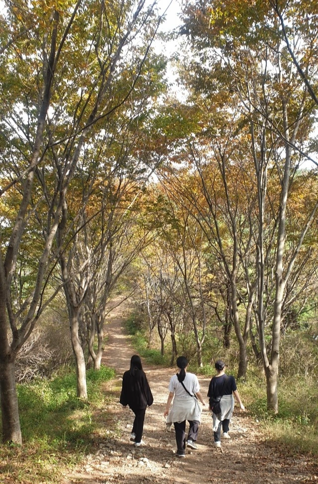 앞으로 걸을 코스에 대한 정보를 미리 학생들에게 알려주었다. 앞으로 1시간 정도 걸을 코스가 가장 힘들 거라 말해주었을 때 학생들은 특유의 톡톡 튀는 입담으로 앞으로 힘들 시간을 웃음으로 시작하게 해주었다. 우리는 제법 잘 걸었다. 내가 속도를 줄이지 않고 앞서 걸을 때도 내 시야를 벗어나지 않을 만큼 따라와 주었다. 몇몇은 힘들어하지도 않아 선두에 세웠다. 그리고 나는 제일 뒤 설화와 함께 걸었다. 선두는 길이 헷갈릴 때는 나에게 연락을 하거나 더는 움직이지 않고 나를 기다렸다. 계획하지 않았지만 우린 제법 잘 맞는 한 팀이었다. 산행하는 동안 내 마음이 점점 걱정에서 즐거움으로 바뀌었다. 신선한 가을바람이 산의 기운과 더해져 더없이 시원했다. 역시 가을은 밖에서 직접 느껴야 배울 수 있는 거였다.